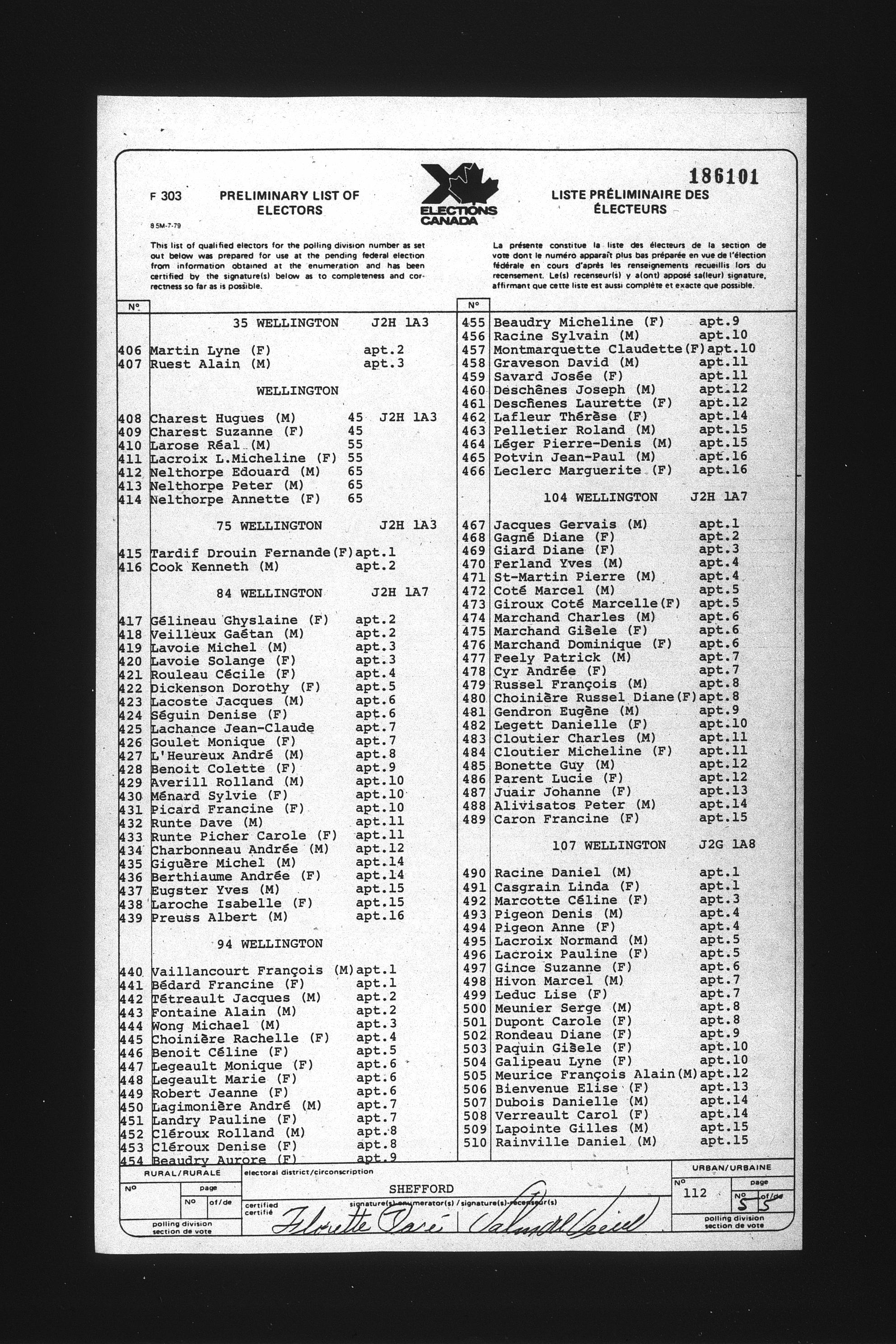 Preliminary voters' lists : Québec, 1984 - T-22079