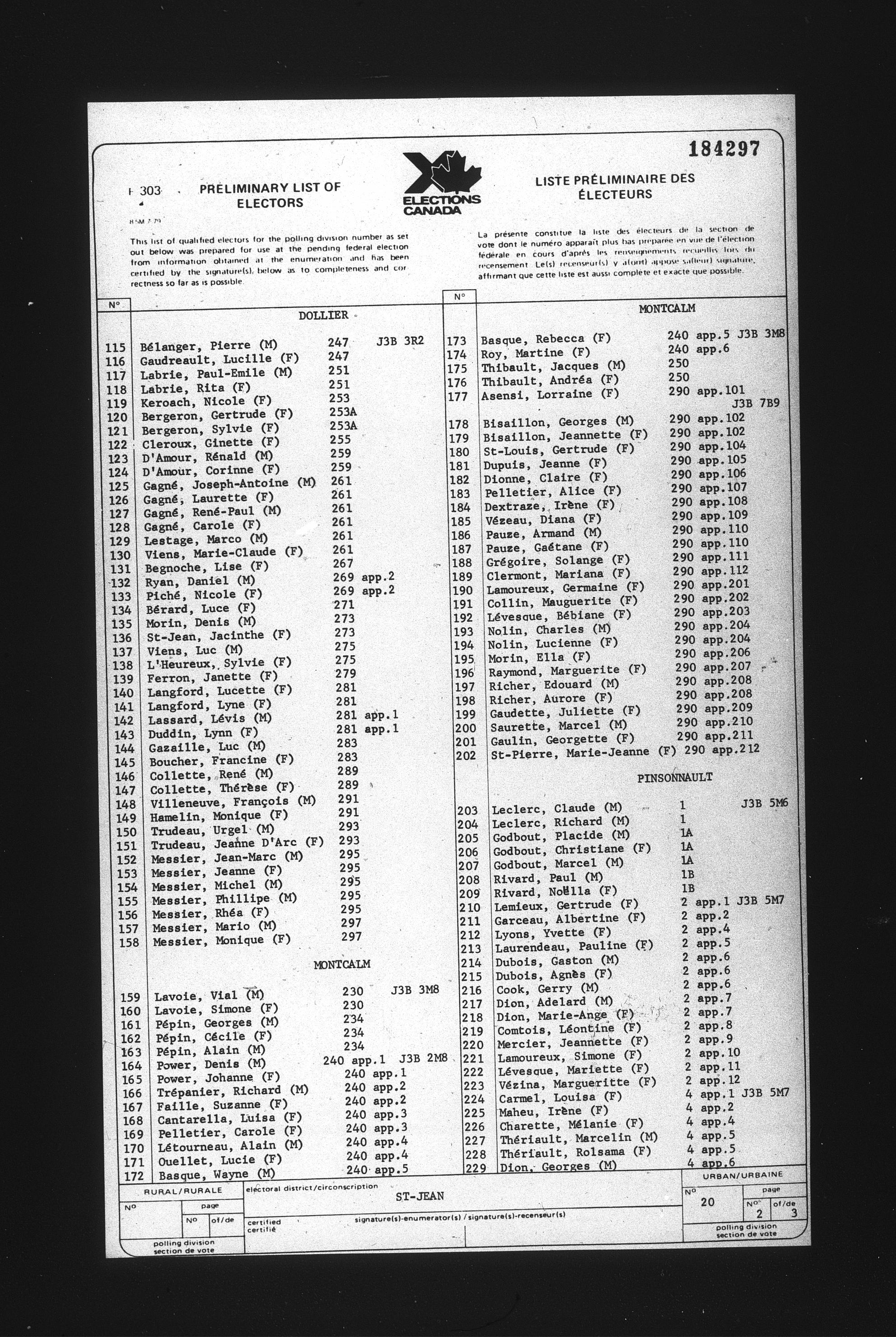 Preliminary voters' lists : Québec, 1984 - T-22079