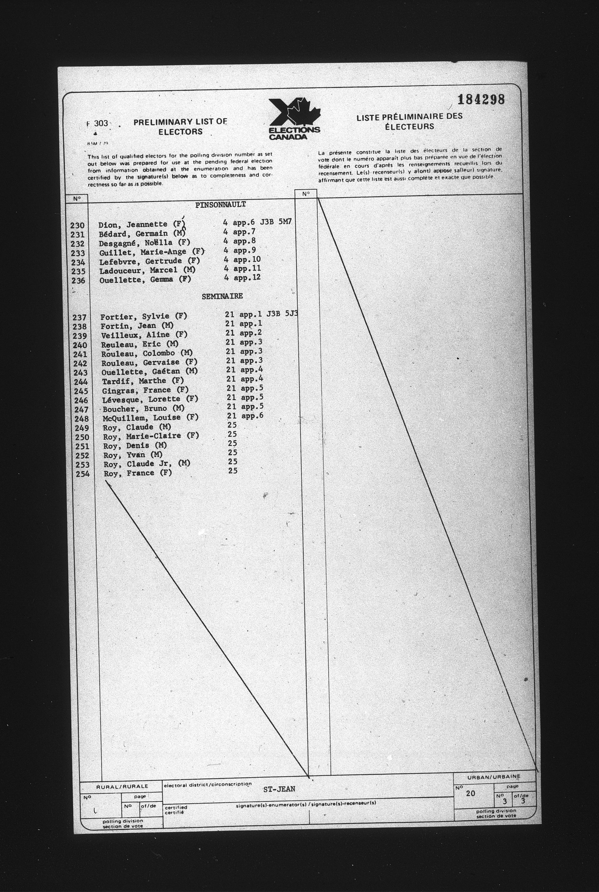 Preliminary voters' lists : Québec, 1984 - T-22079