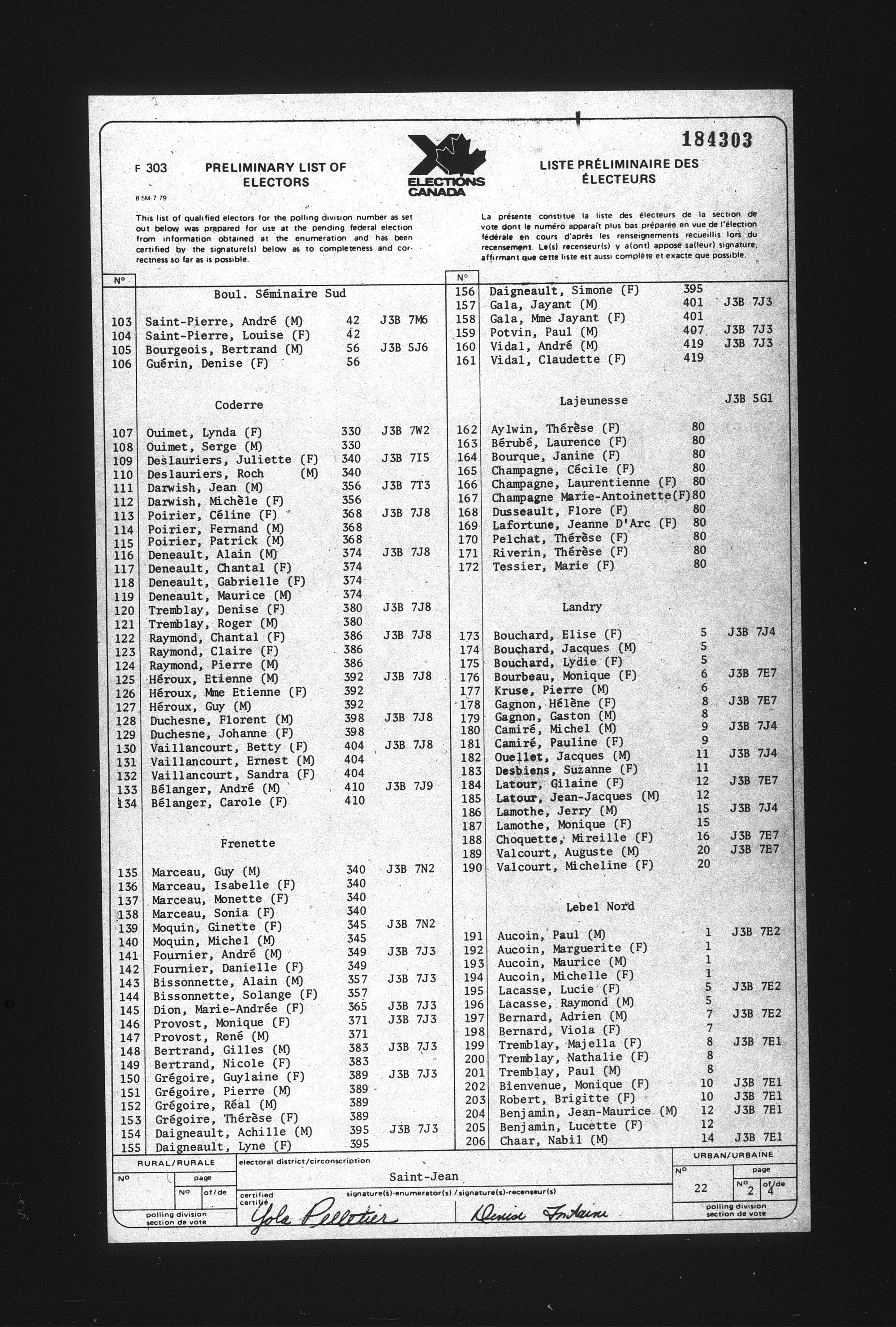Preliminary voters' lists : Québec, 1984 - T-22079