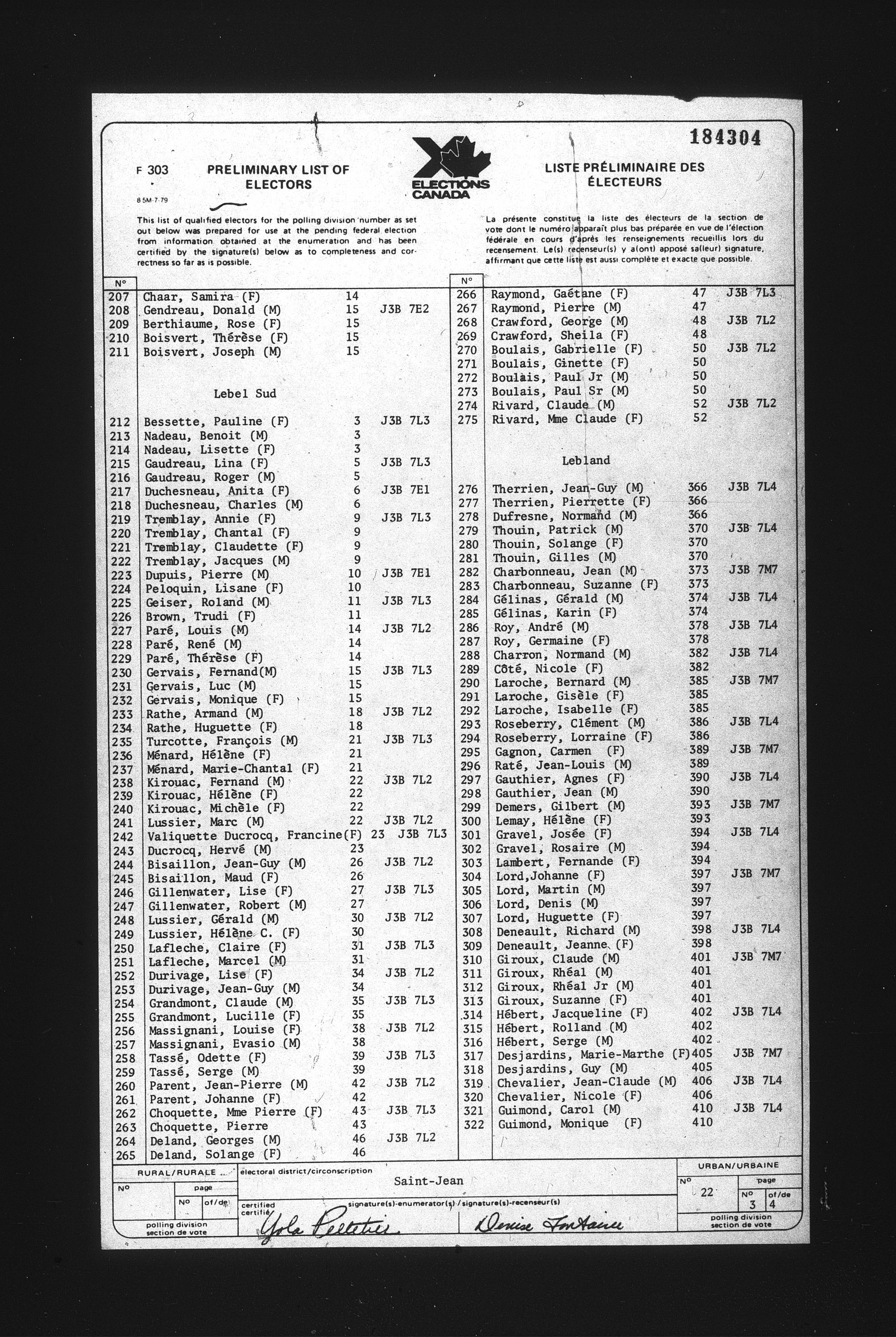 Preliminary voters' lists : Québec, 1984 - T-22079