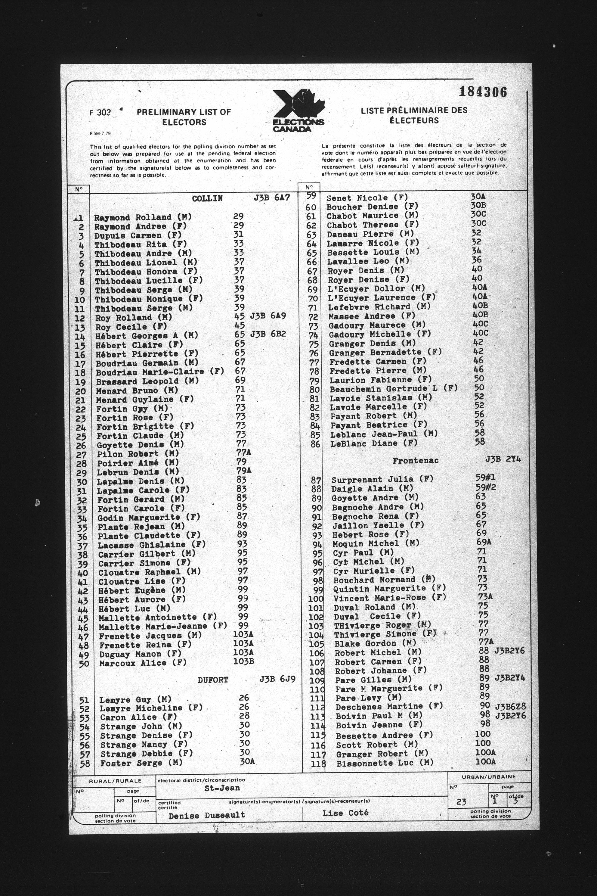 Preliminary voters' lists : Québec, 1984 - T-22079