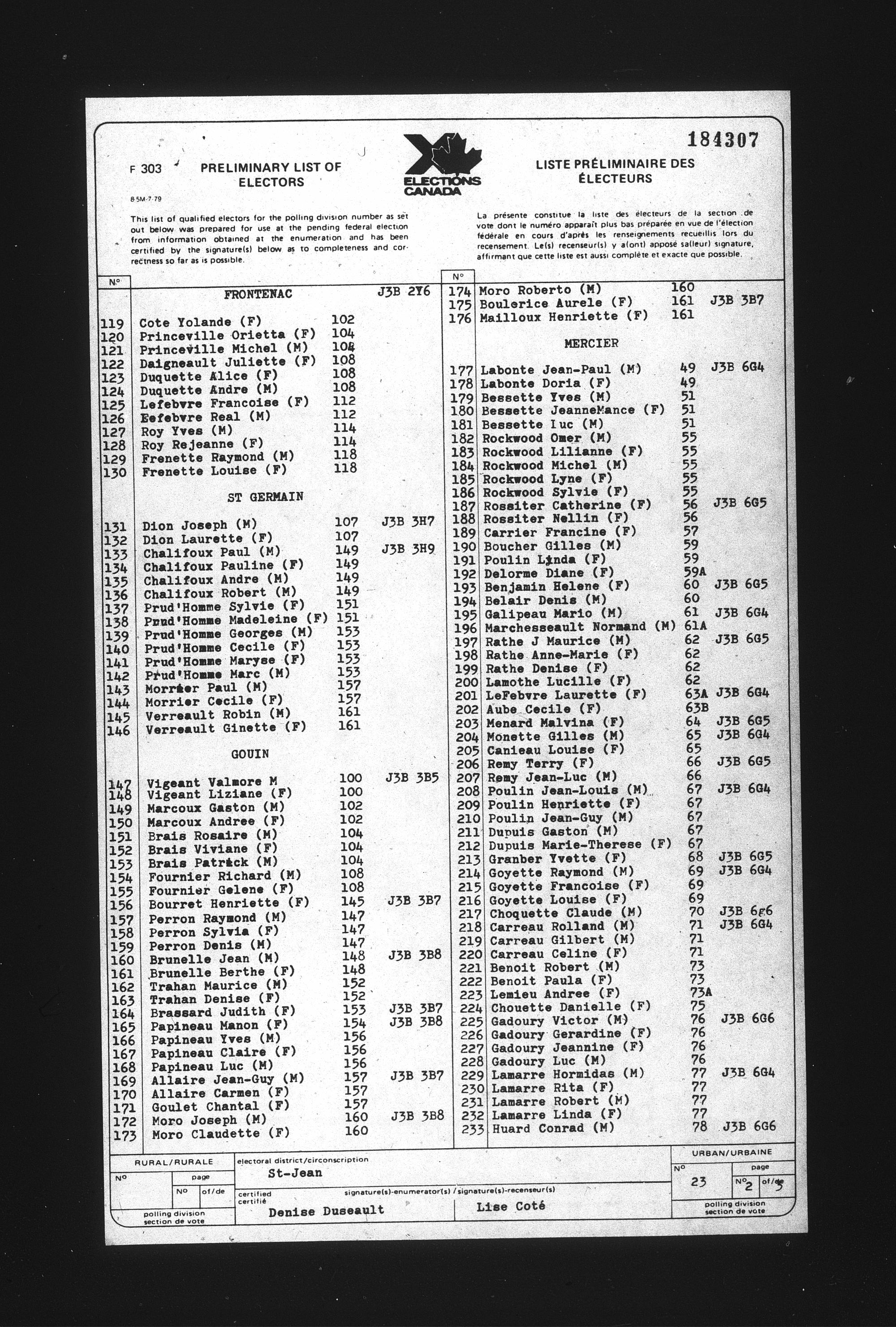 Preliminary voters' lists : Québec, 1984 - T-22079