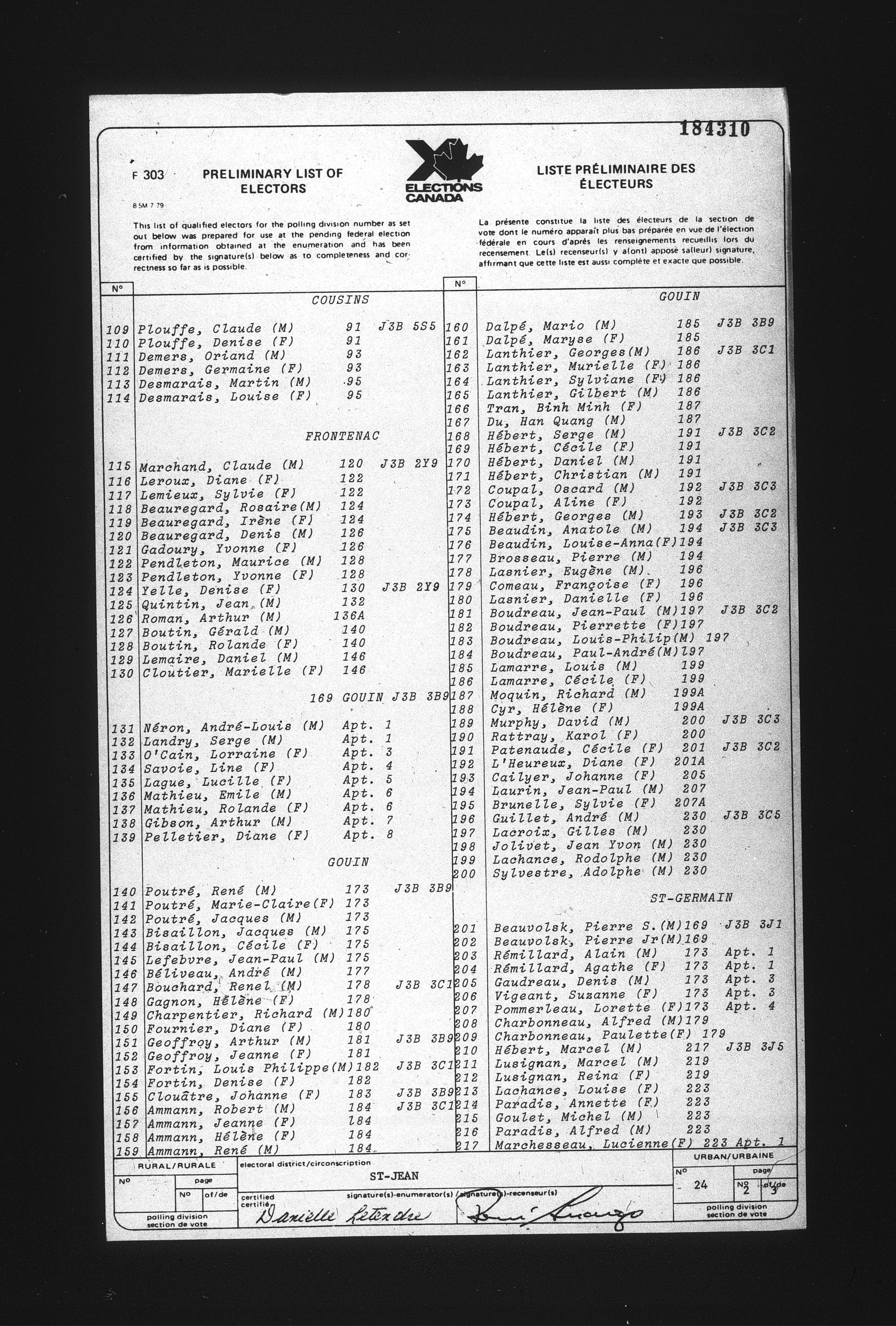 Preliminary voters' lists : Québec, 1984 - T-22079