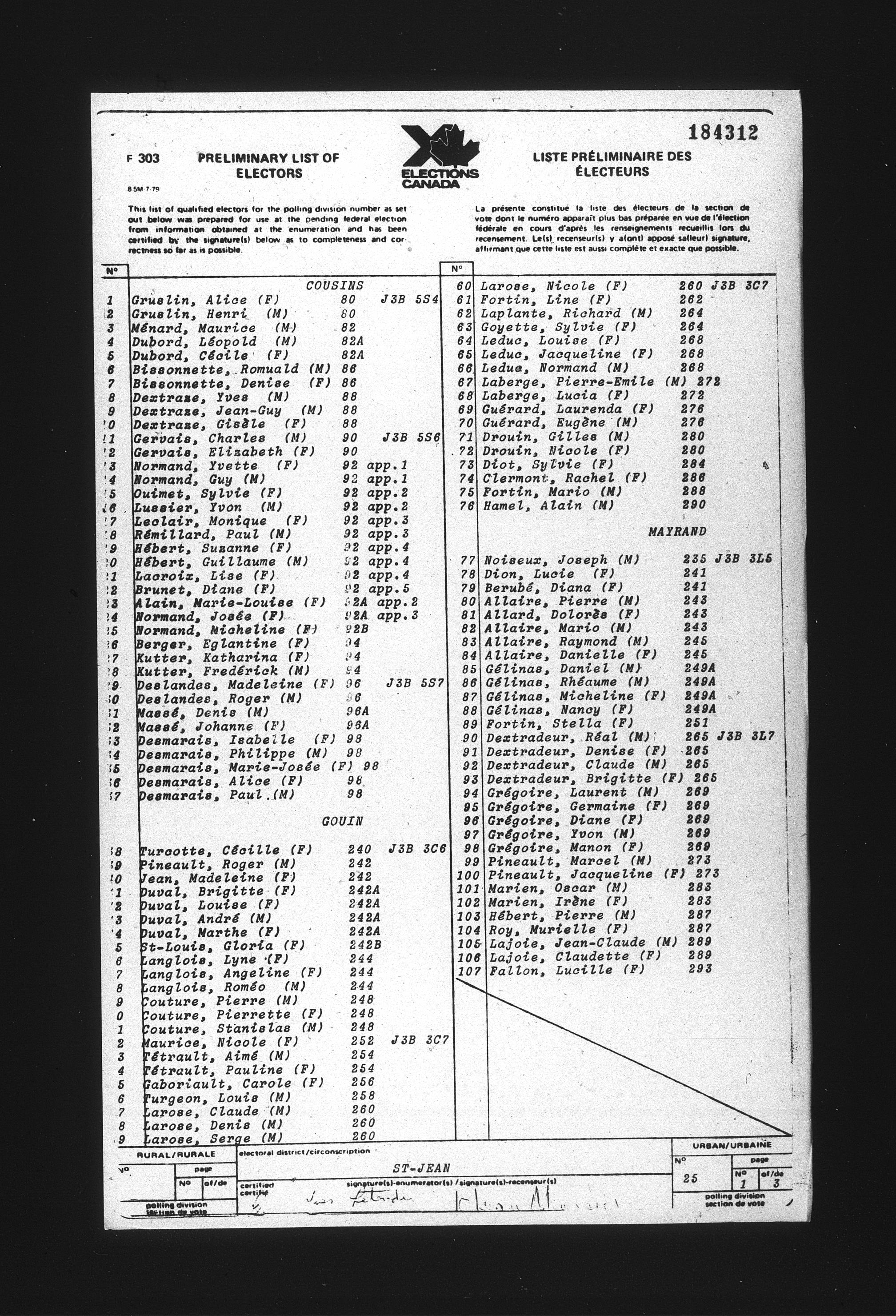 Preliminary voters' lists : Québec, 1984 - T-22079