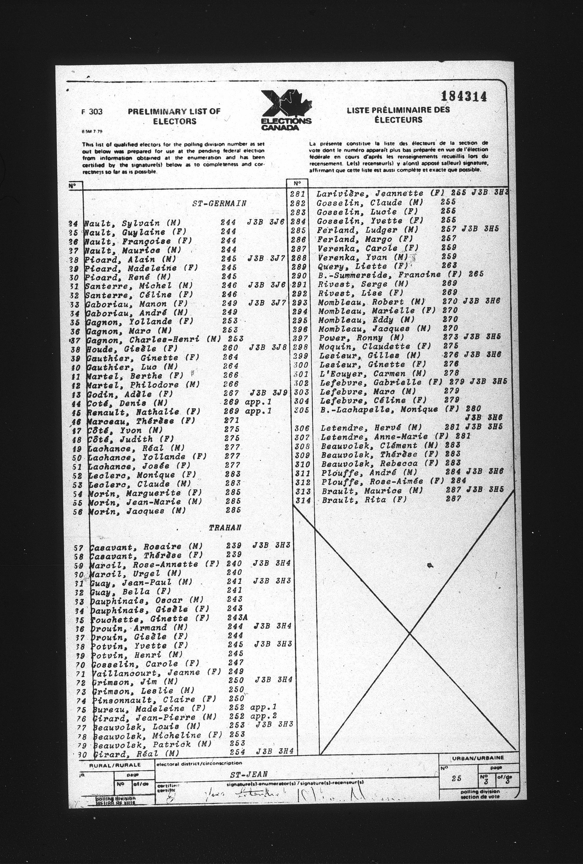 Preliminary voters' lists : Québec, 1984 - T-22079