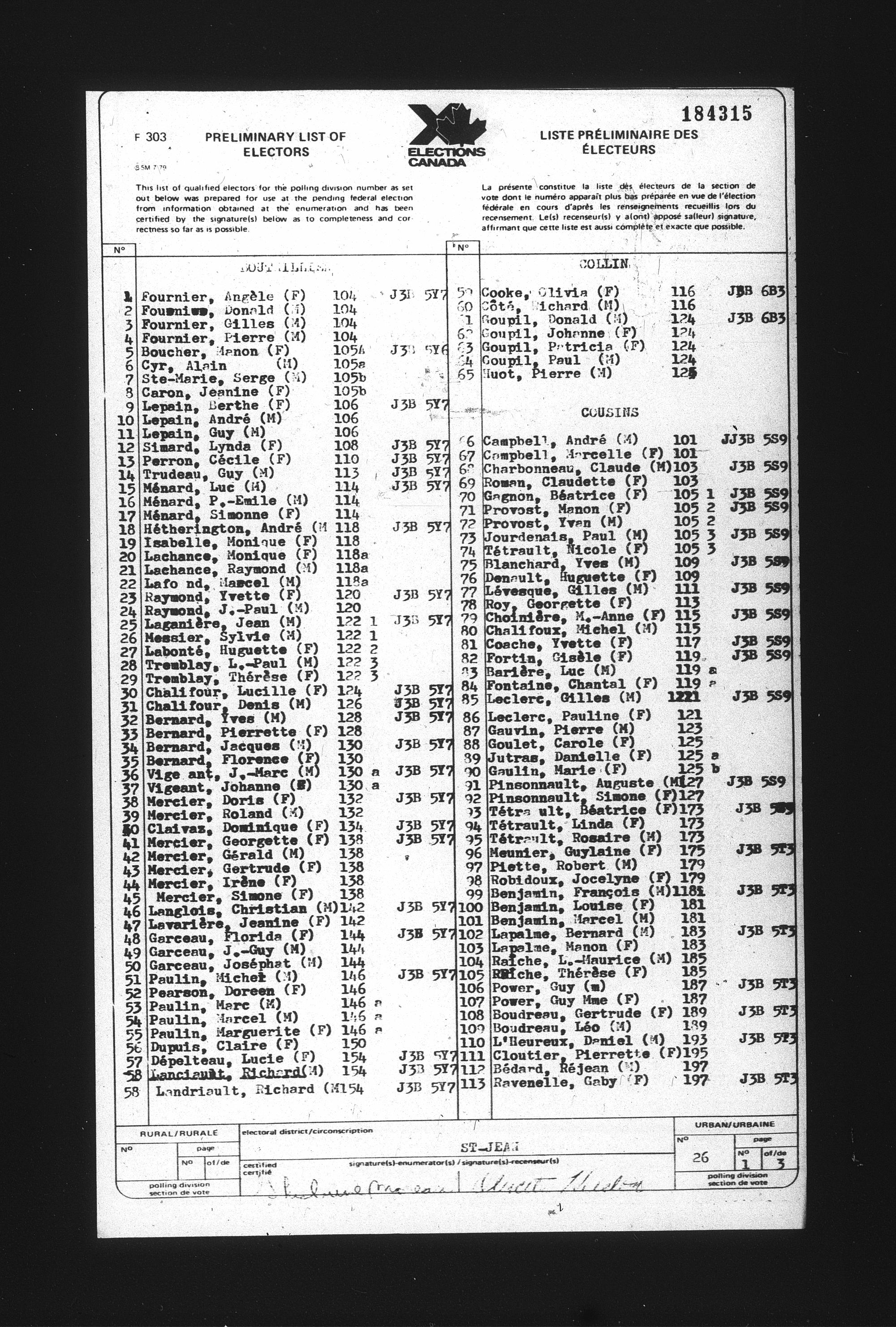 Preliminary voters' lists : Québec, 1984 - T-22079