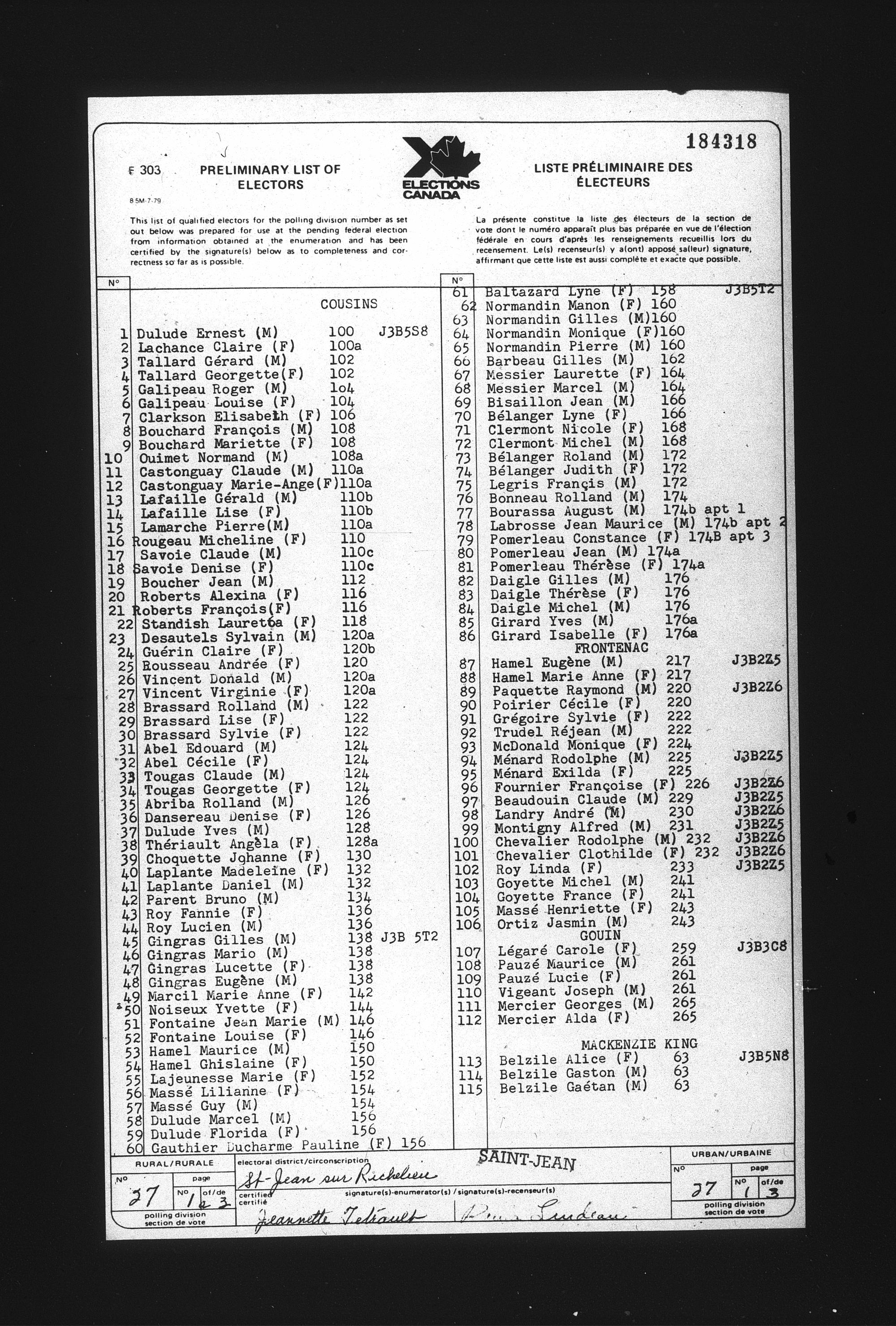 Preliminary voters' lists : Québec, 1984 - T-22079
