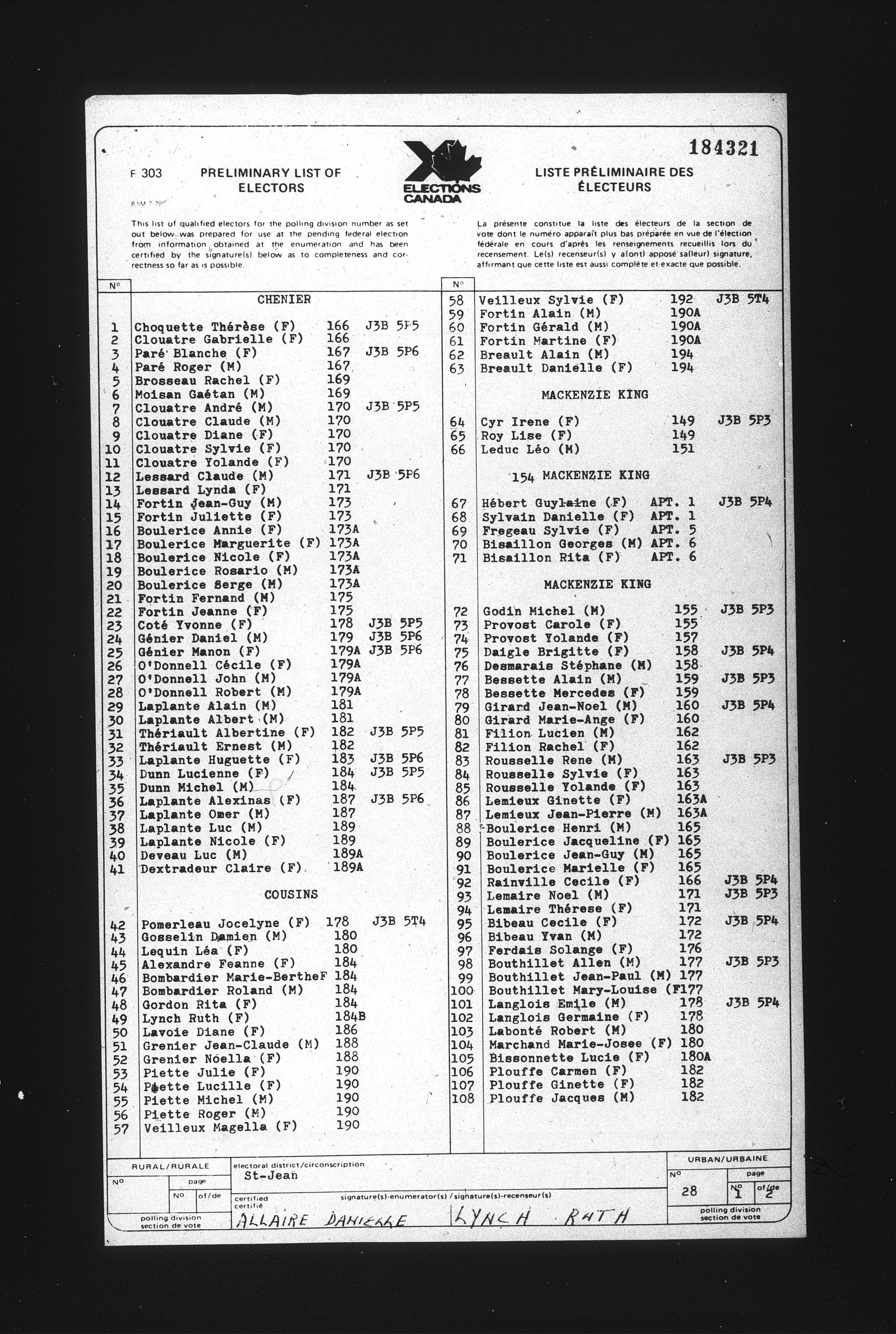 Preliminary voters' lists : Québec, 1984 - T-22079