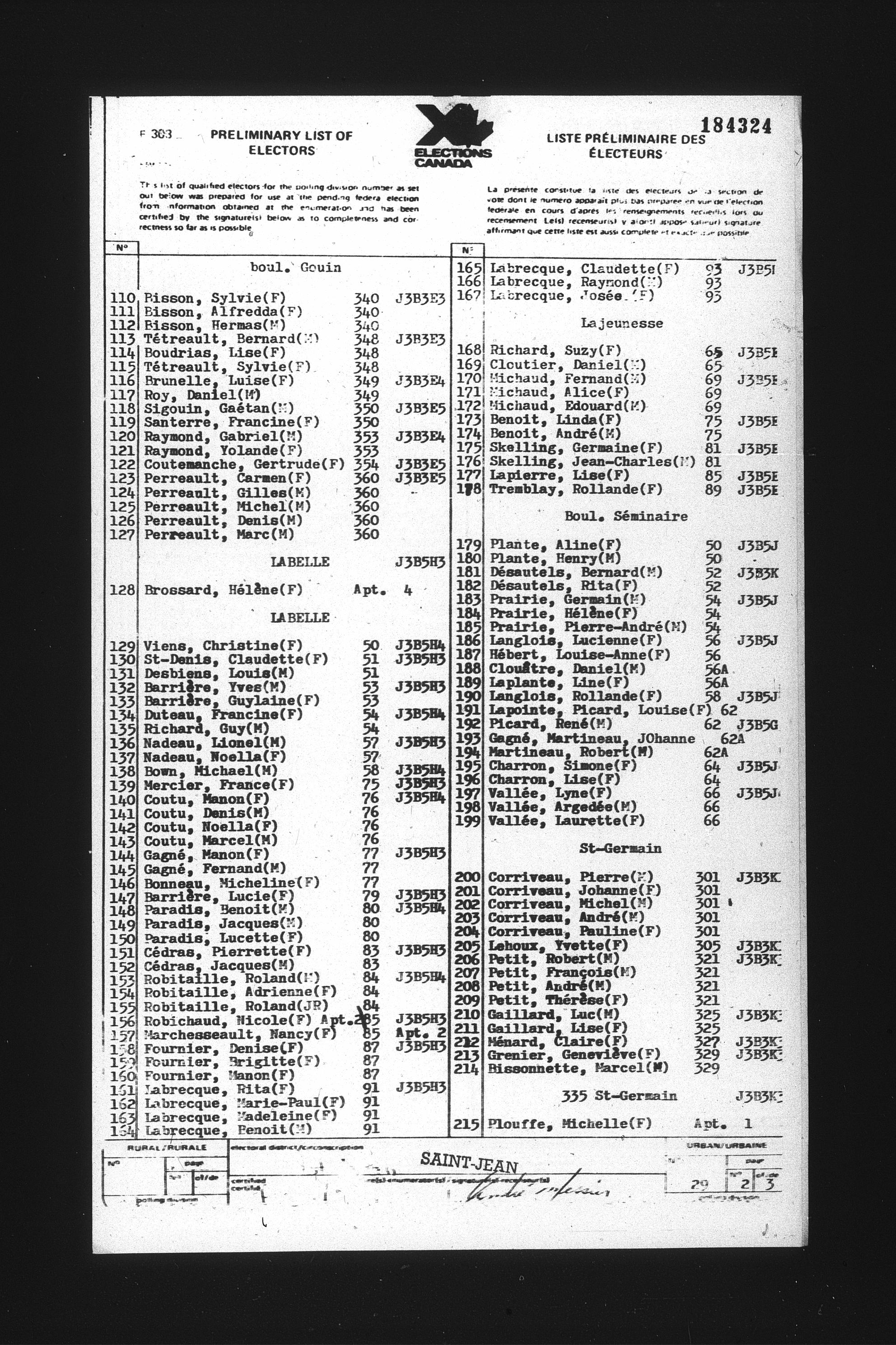 Preliminary voters' lists : Québec, 1984 - T-22079