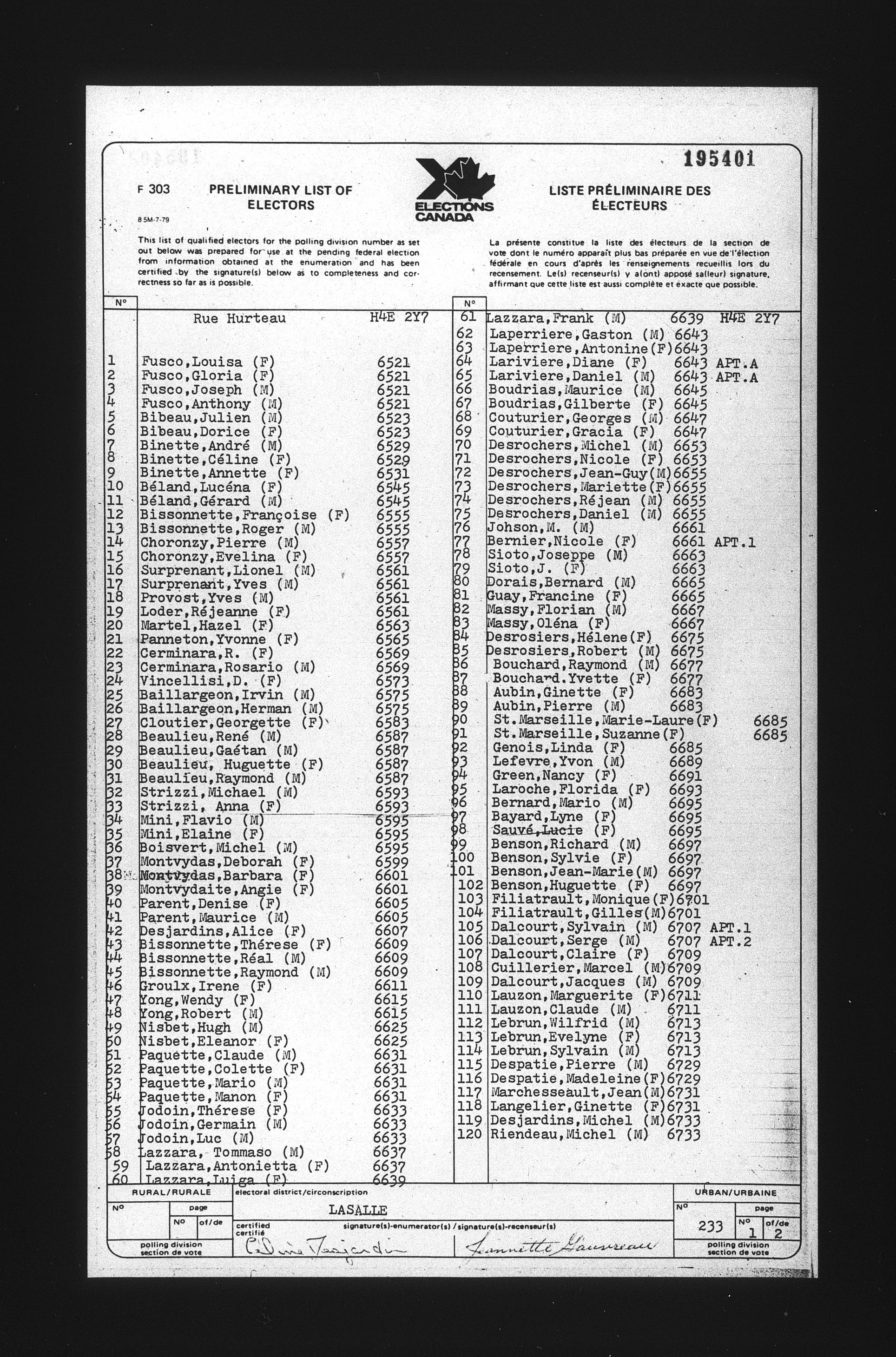 Preliminary voters' lists : Québec, 1984 - T-22084
