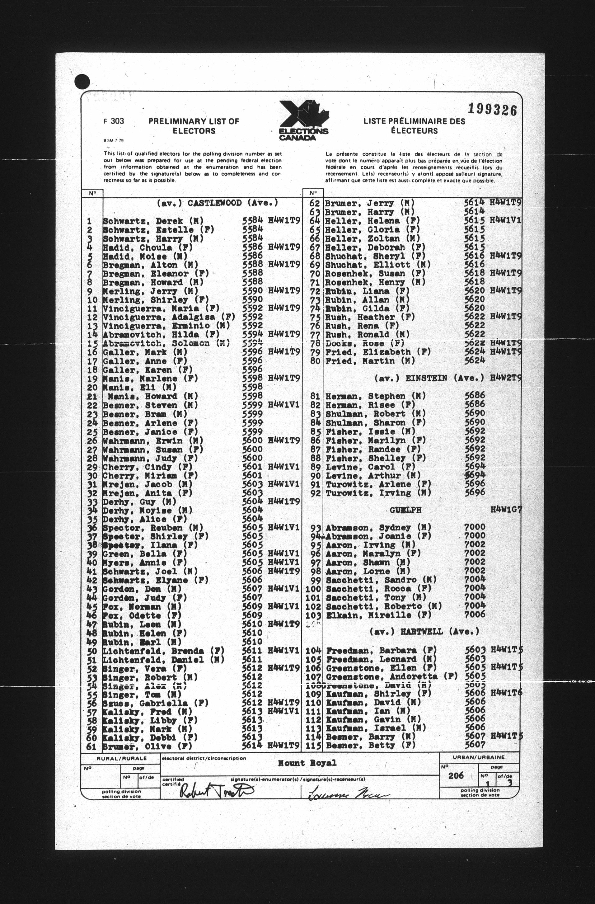 Preliminary voters' lists : Québec, 1984 - T-22086