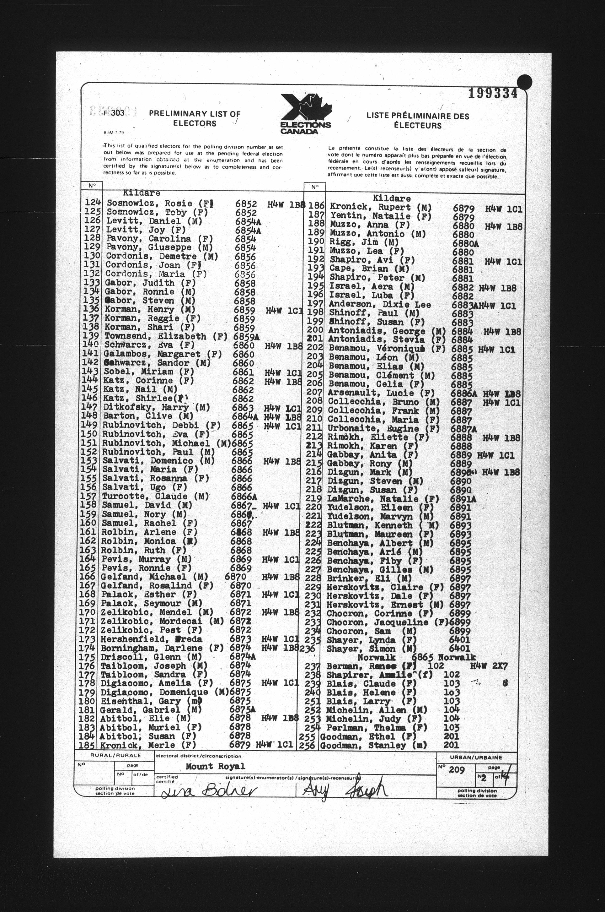 Preliminary voters' lists : Québec, 1984 - T-22086