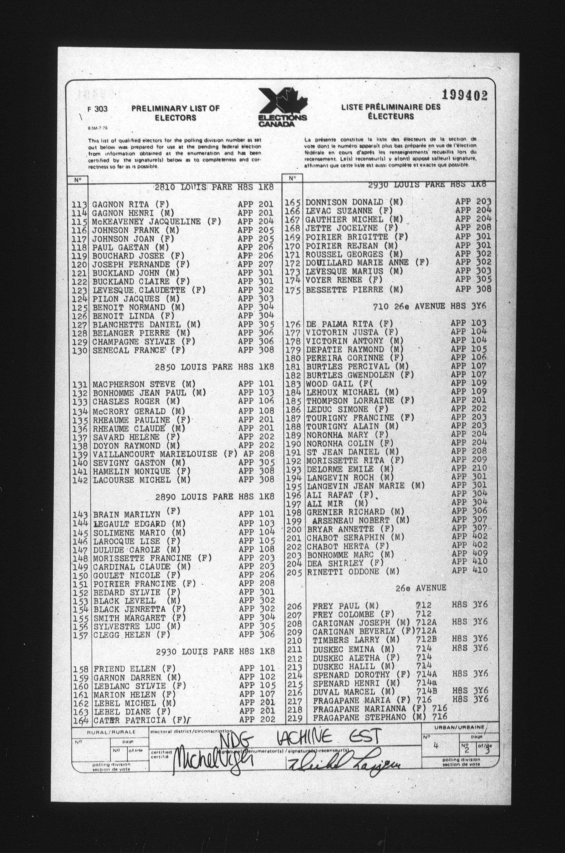 Preliminary voters' lists : Québec, 1984 - T-22087