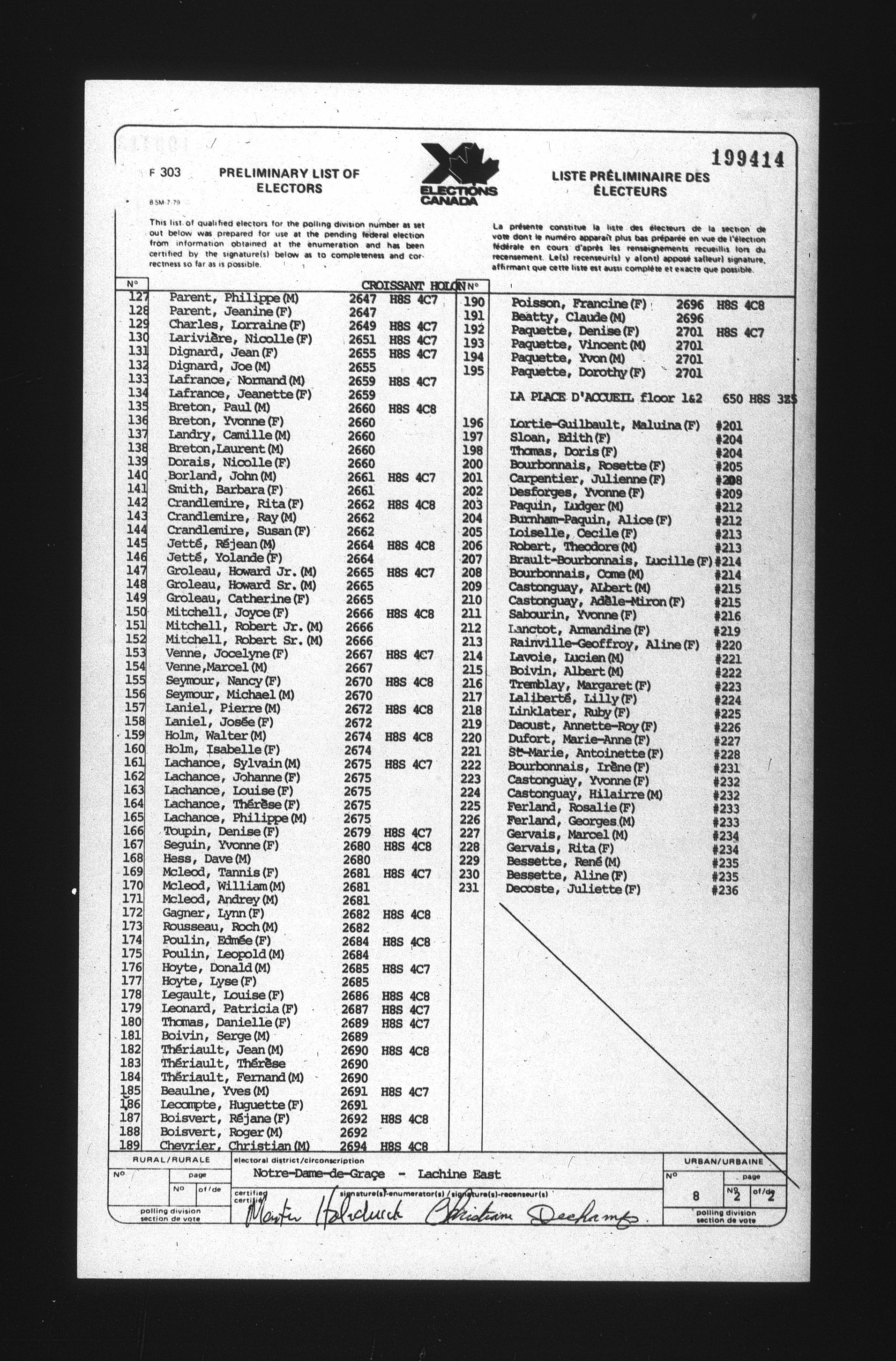 Preliminary voters' lists : Québec, 1984 - T-22087