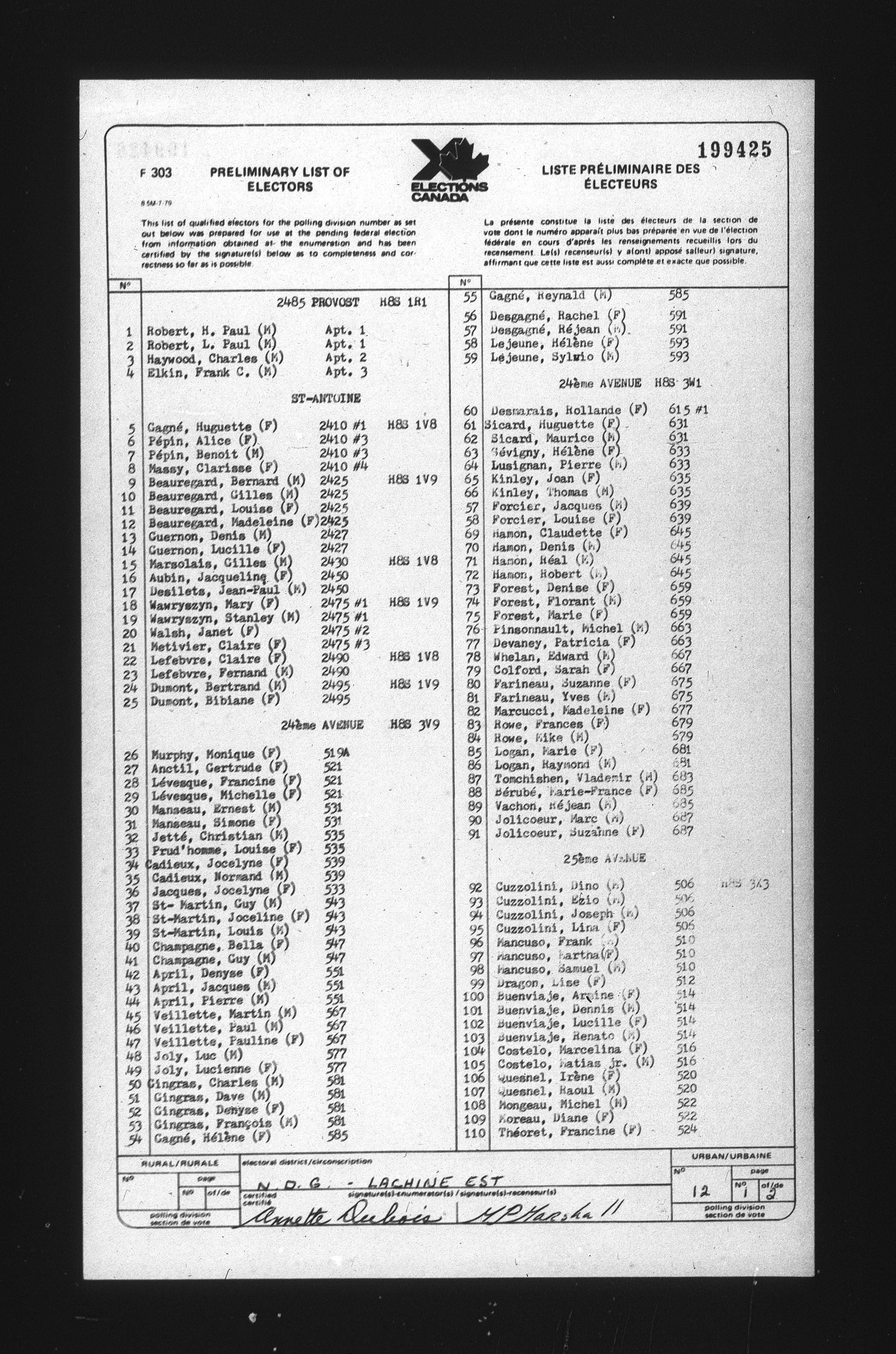 Preliminary voters' lists : Québec, 1984 - T-22087