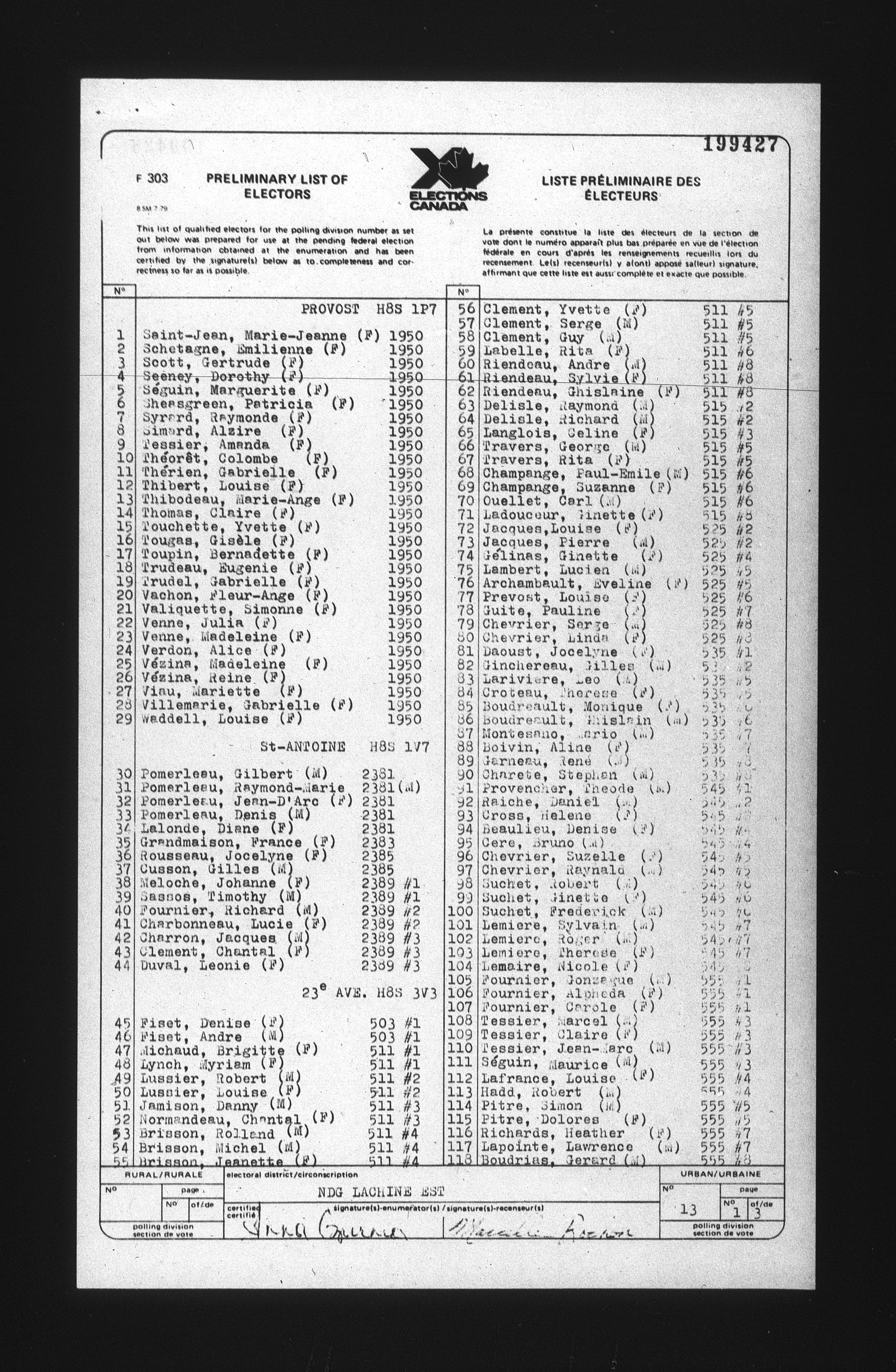 Preliminary voters' lists : Québec, 1984 - T-22087