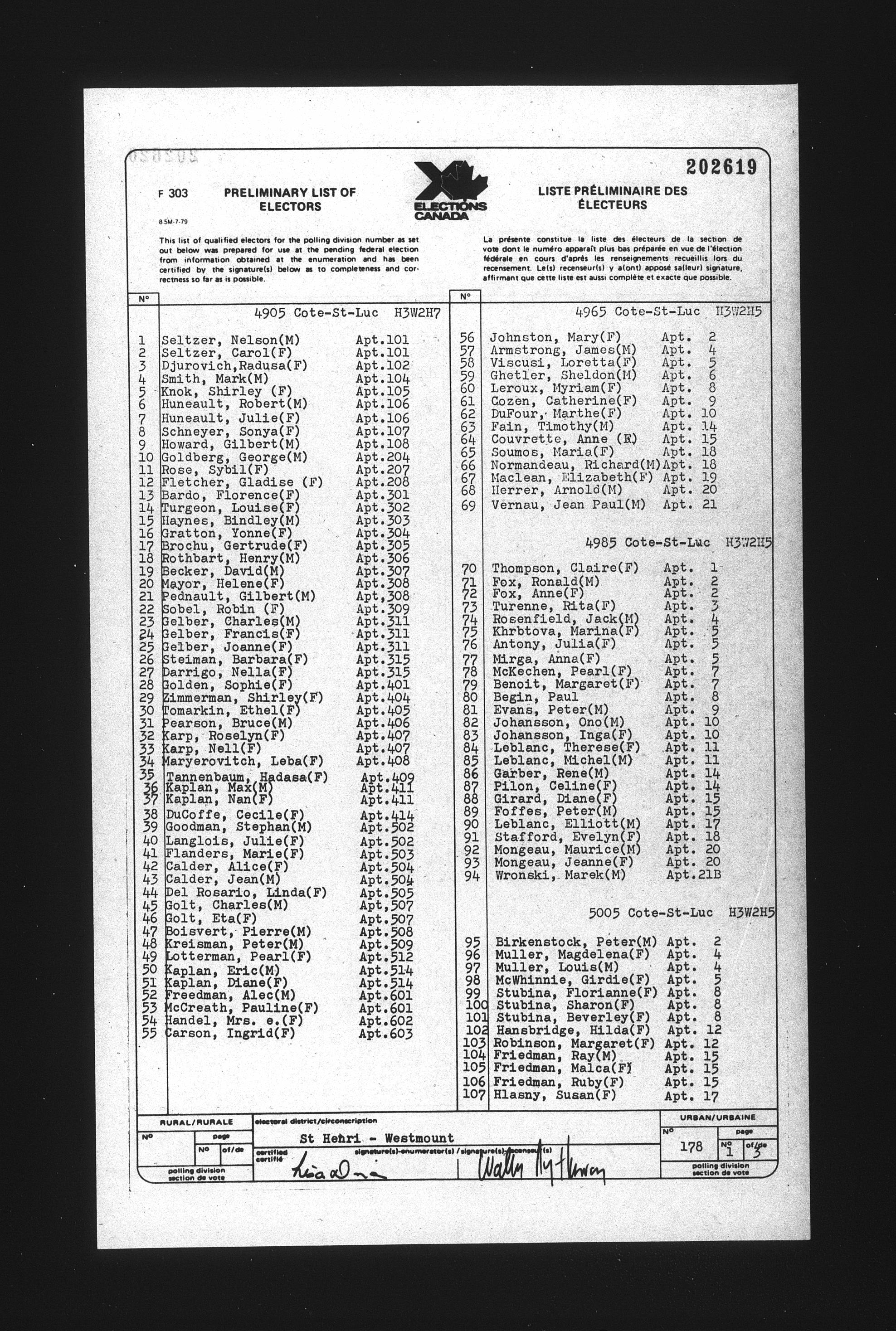 Preliminary voters' lists : Québec, 1984 - T-22088