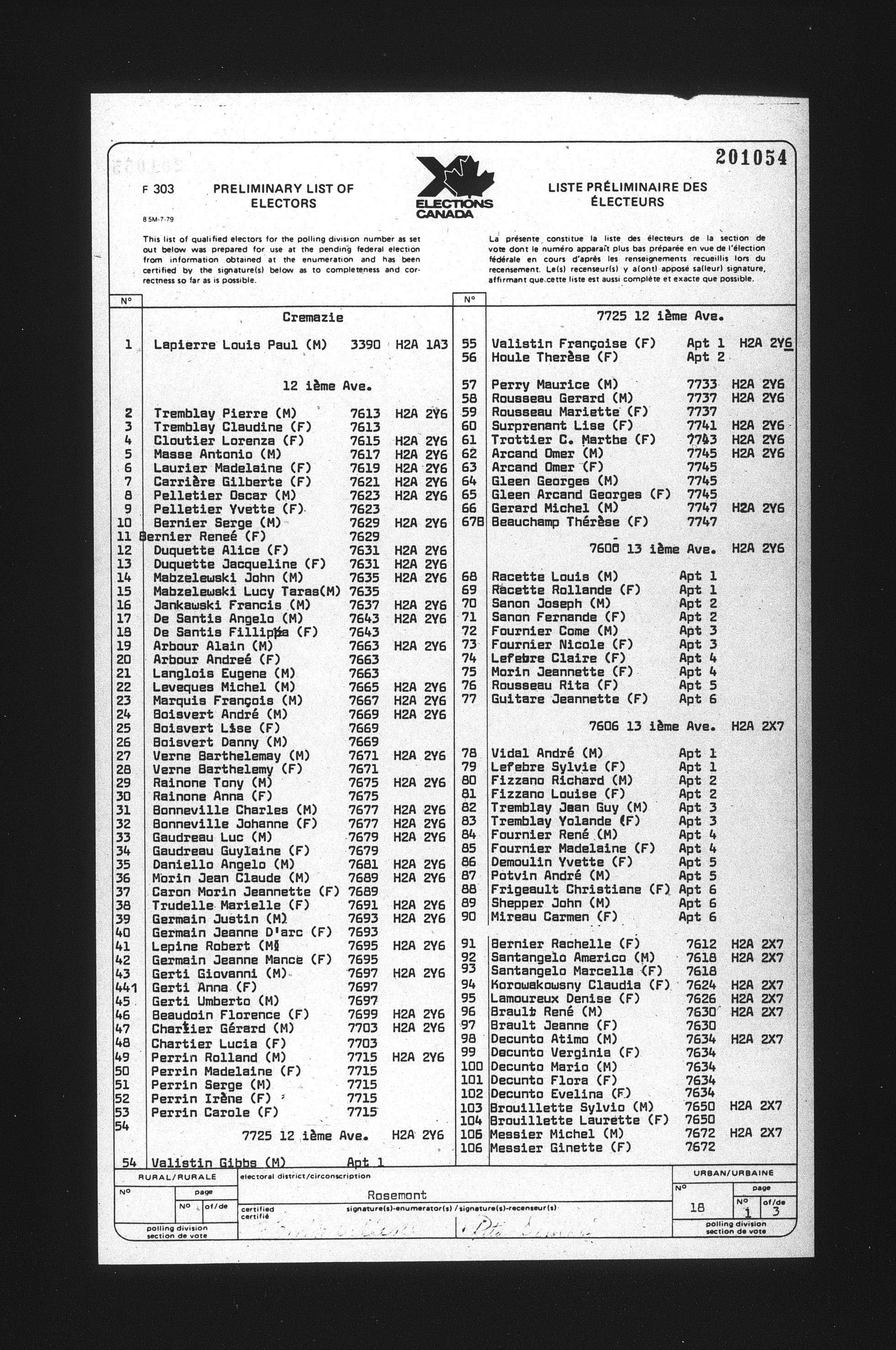 Preliminary voters' lists : Québec, 1984 - T-22088