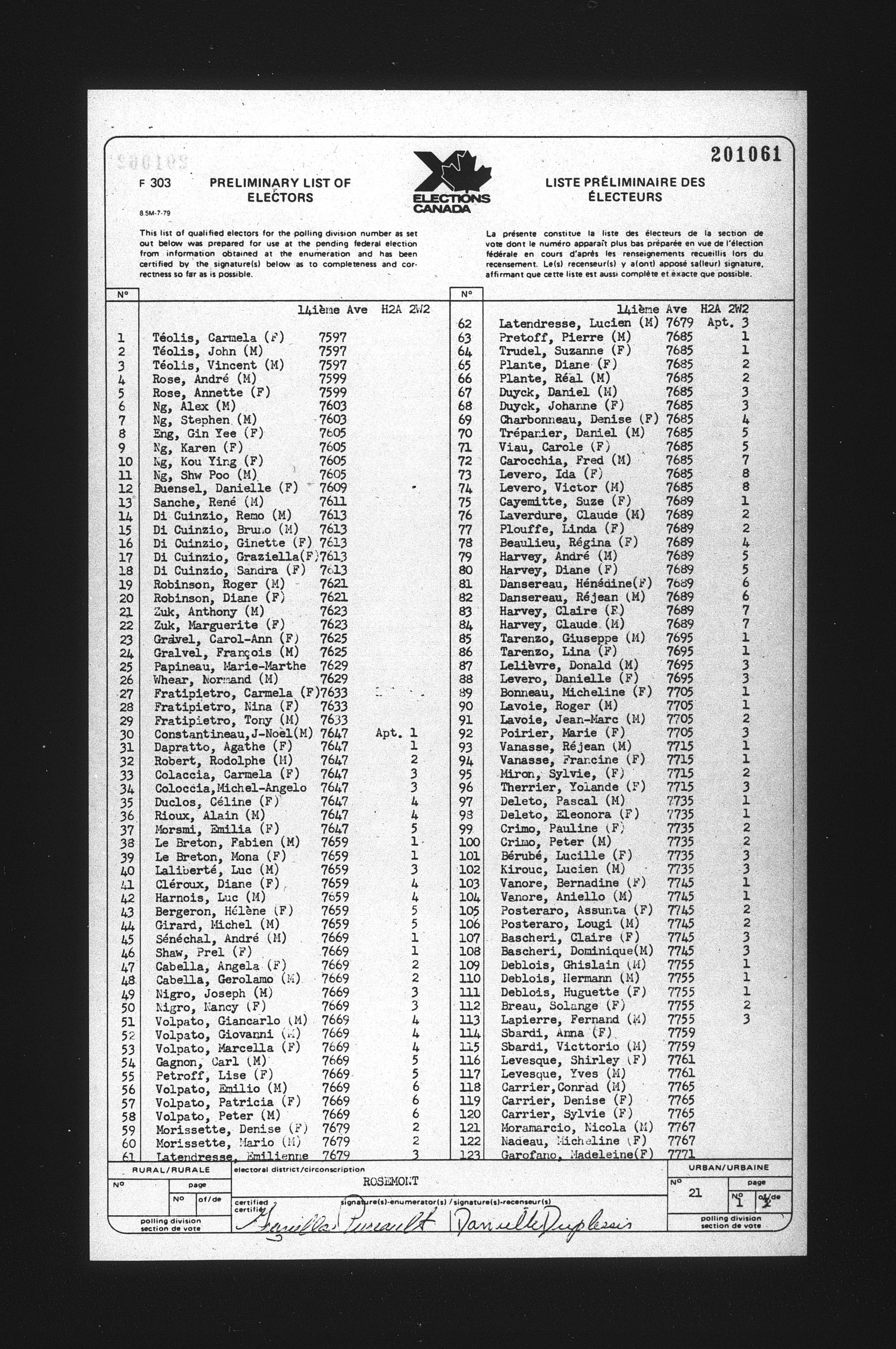 Preliminary voters' lists : Québec, 1984 - T-22088