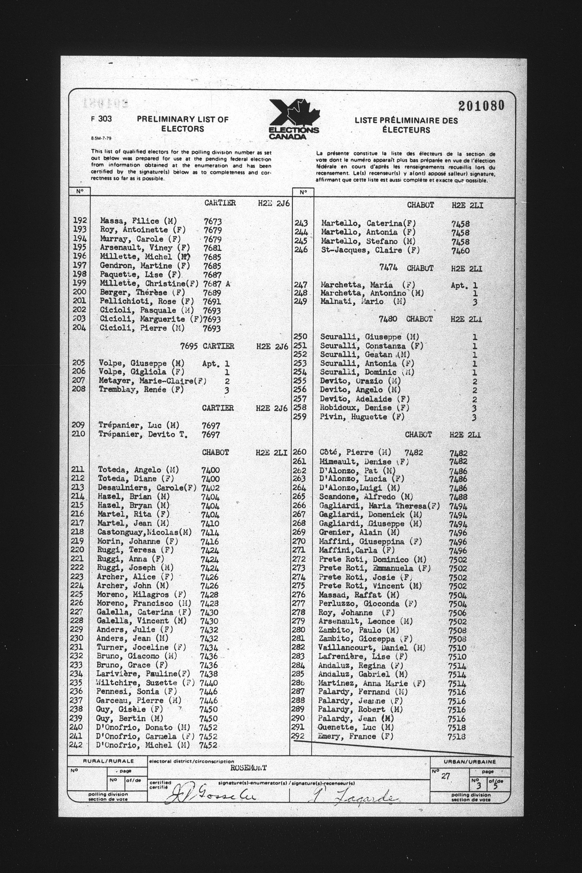 Preliminary voters' lists : Québec, 1984 - T-22088