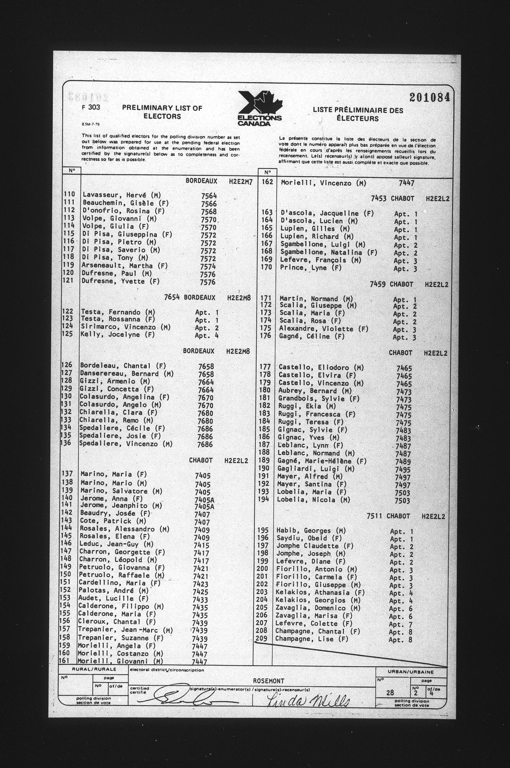 Preliminary voters' lists : Québec, 1984 - T-22088