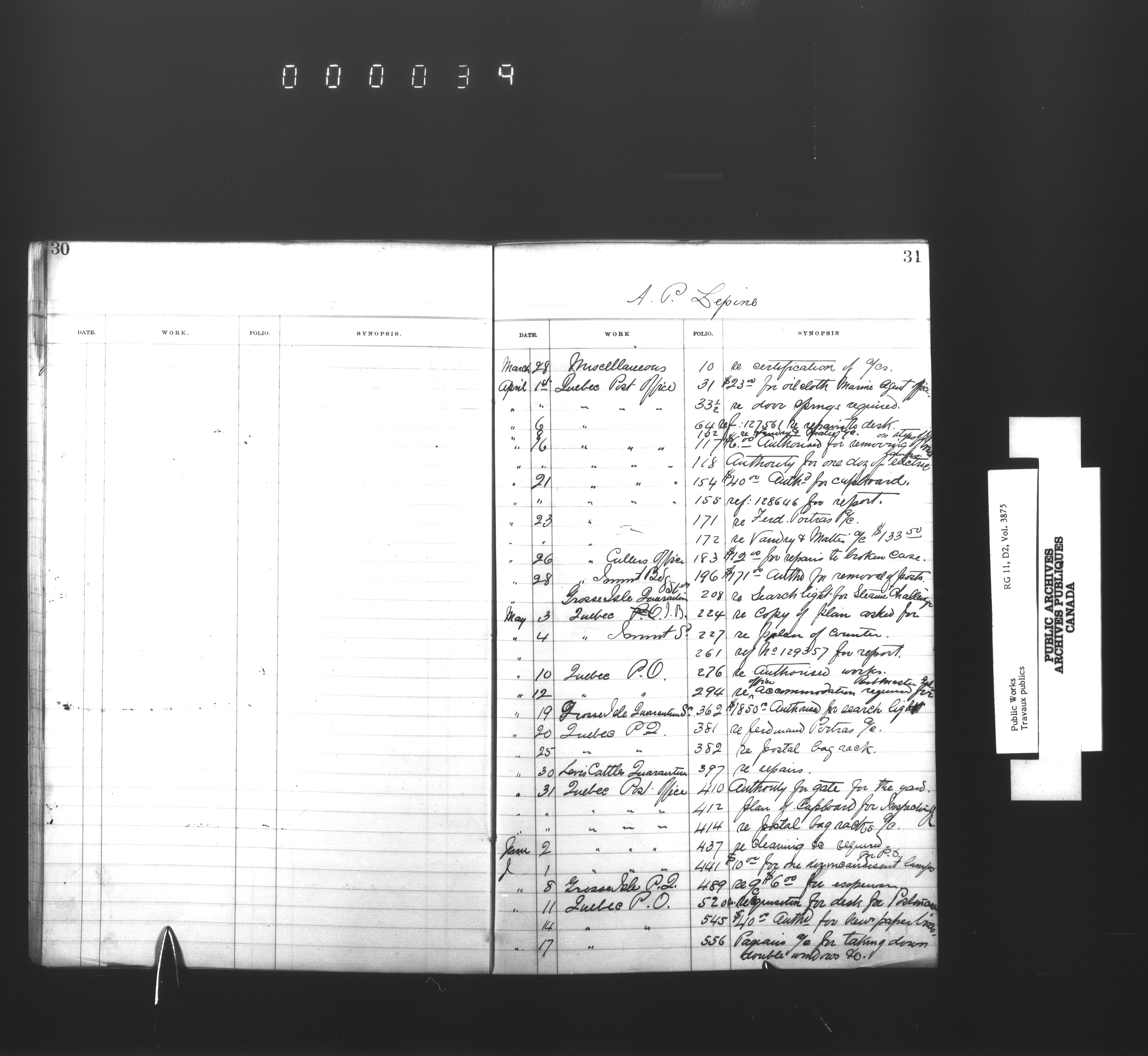 Department of Public Works, Chief Architect's Office : Letterbooks, 1873-1909 : T-2220
