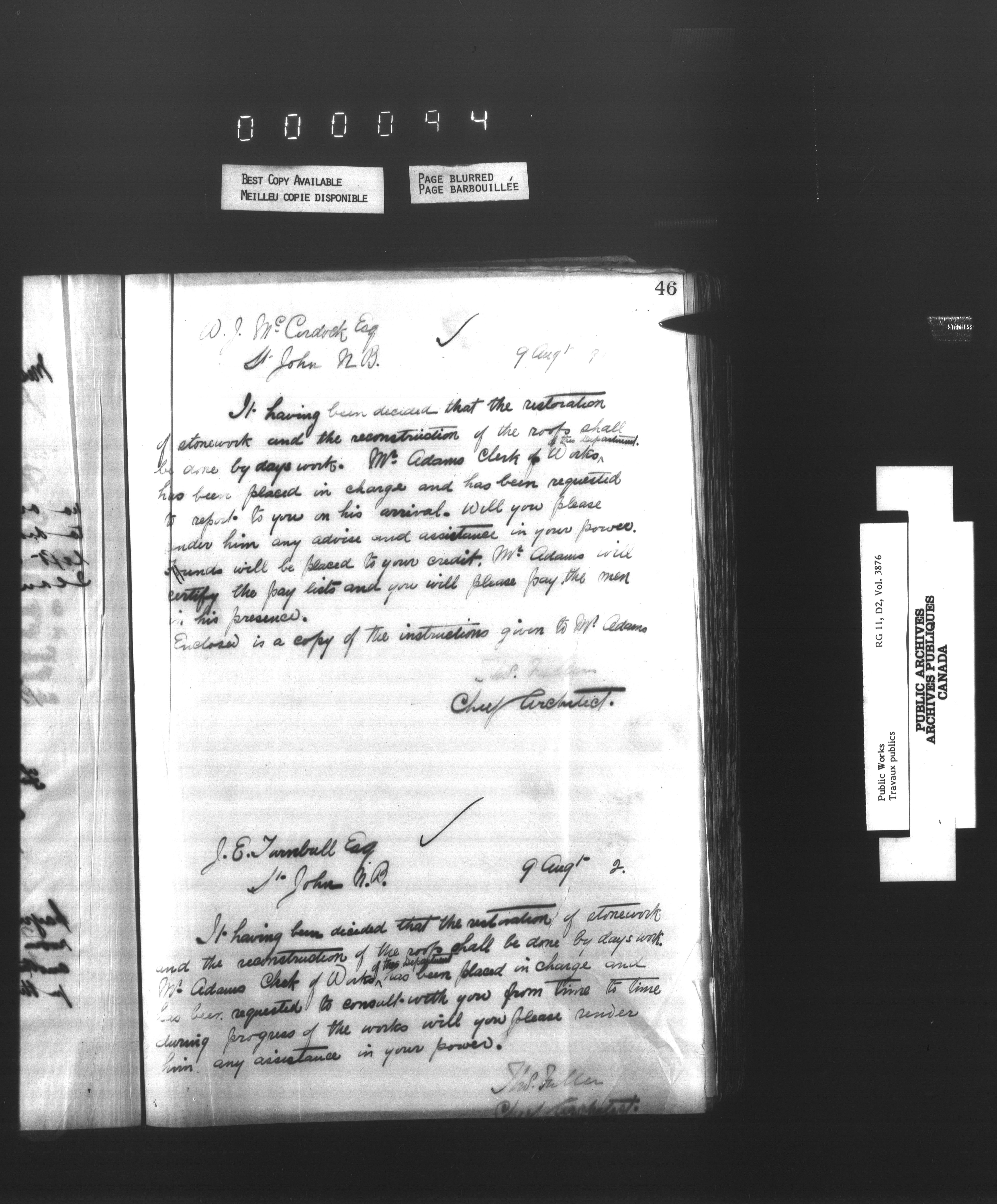 Department of Public Works, Chief Architect's Office : Letterbooks, 1873-1909 : T-2220