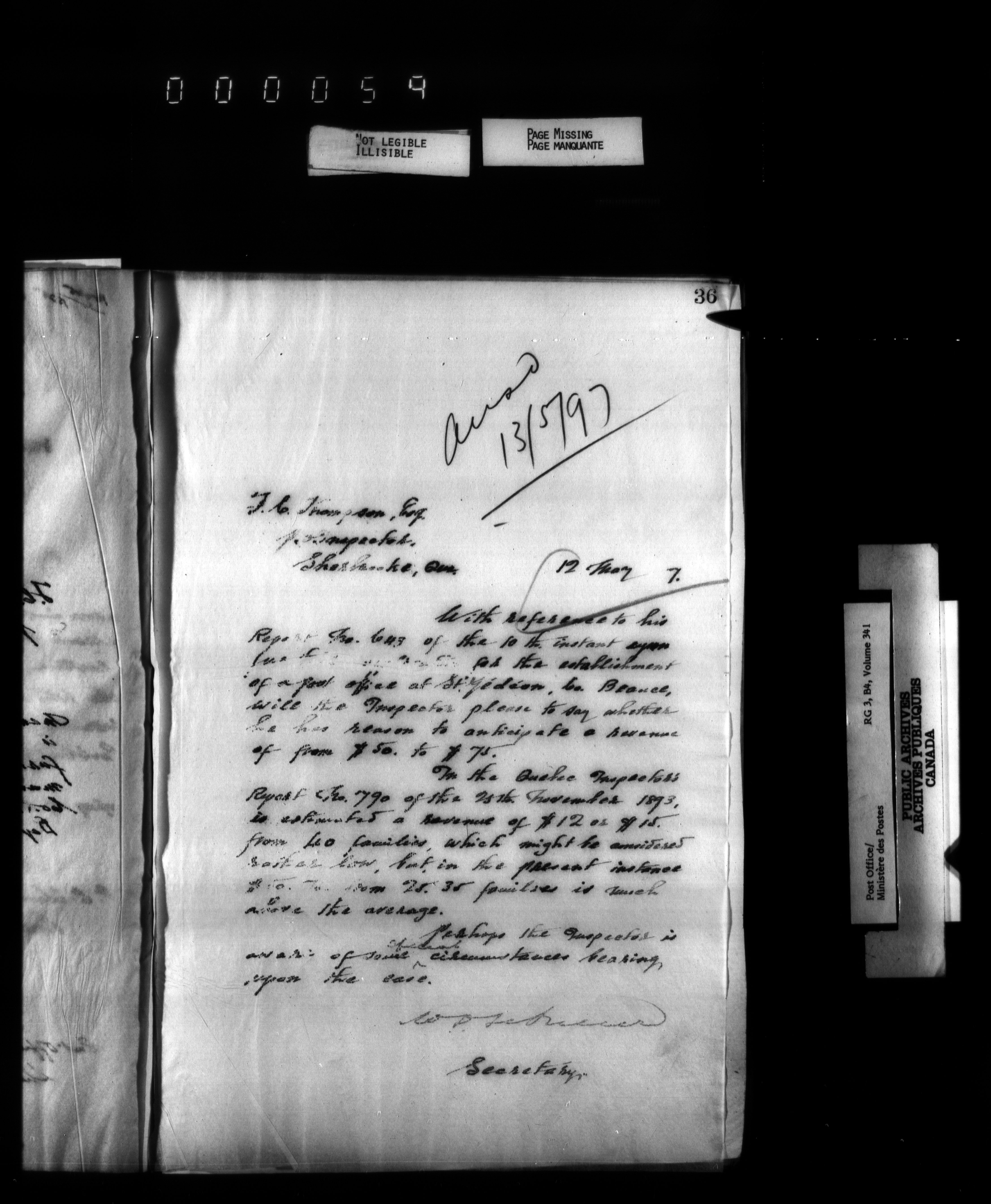 Correspondence from the Secretary to Post Office Inspectors : Letterbooks, Quebec- Quebec - 2230