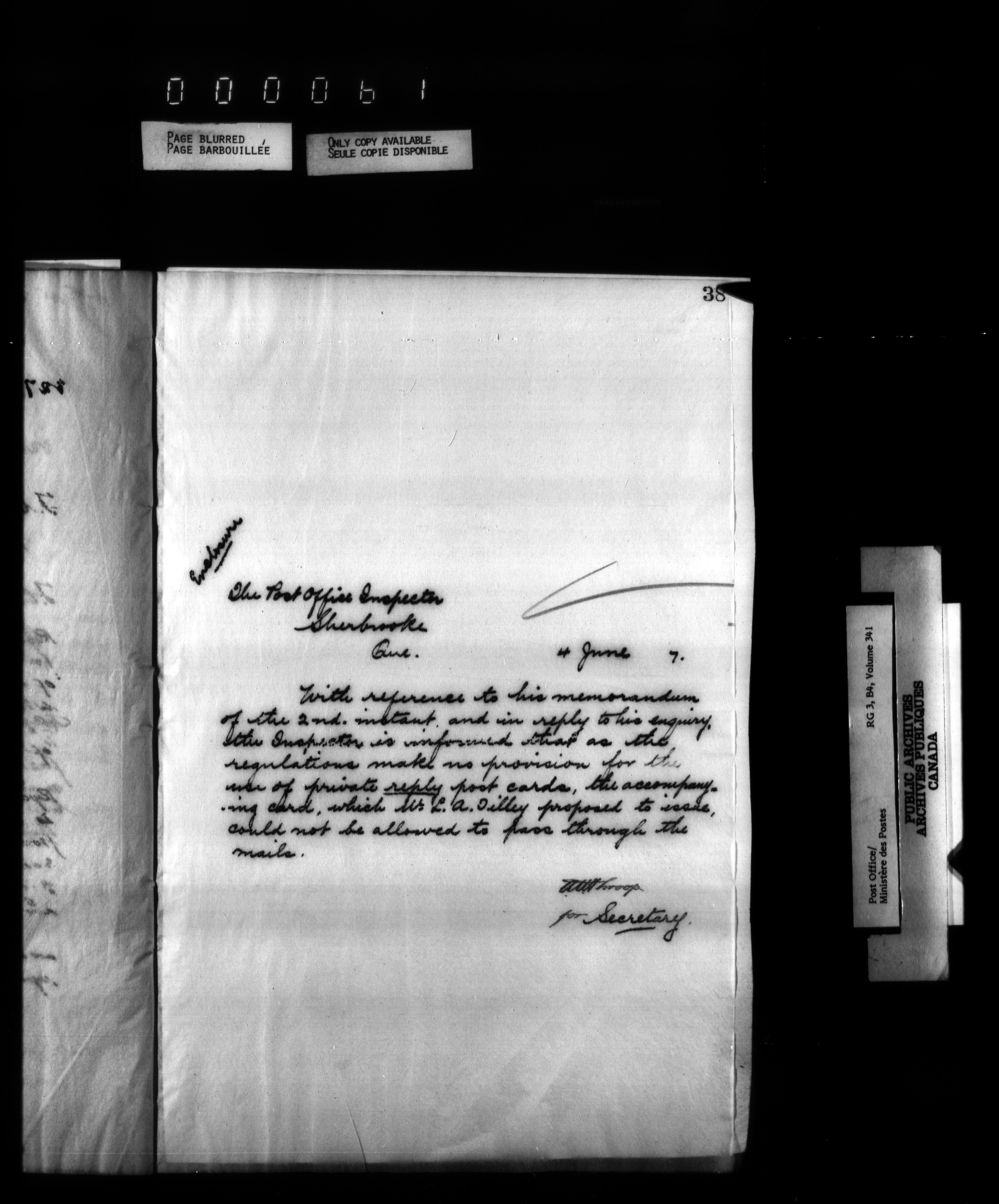 Correspondence from the Secretary to Post Office Inspectors : Letterbooks, Quebec- Quebec - 2230