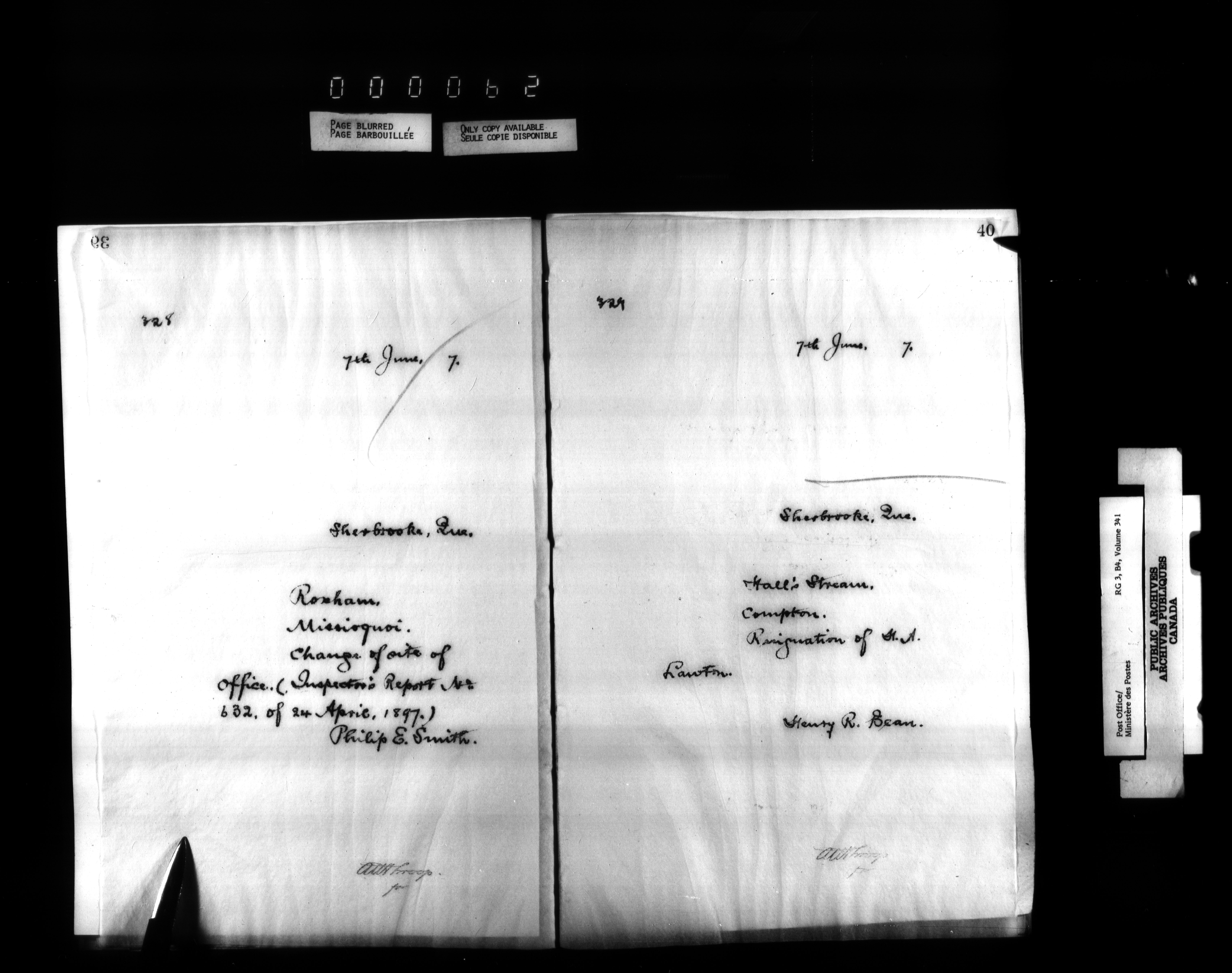Correspondence from the Secretary to Post Office Inspectors : Letterbooks, Quebec- Quebec - 2230