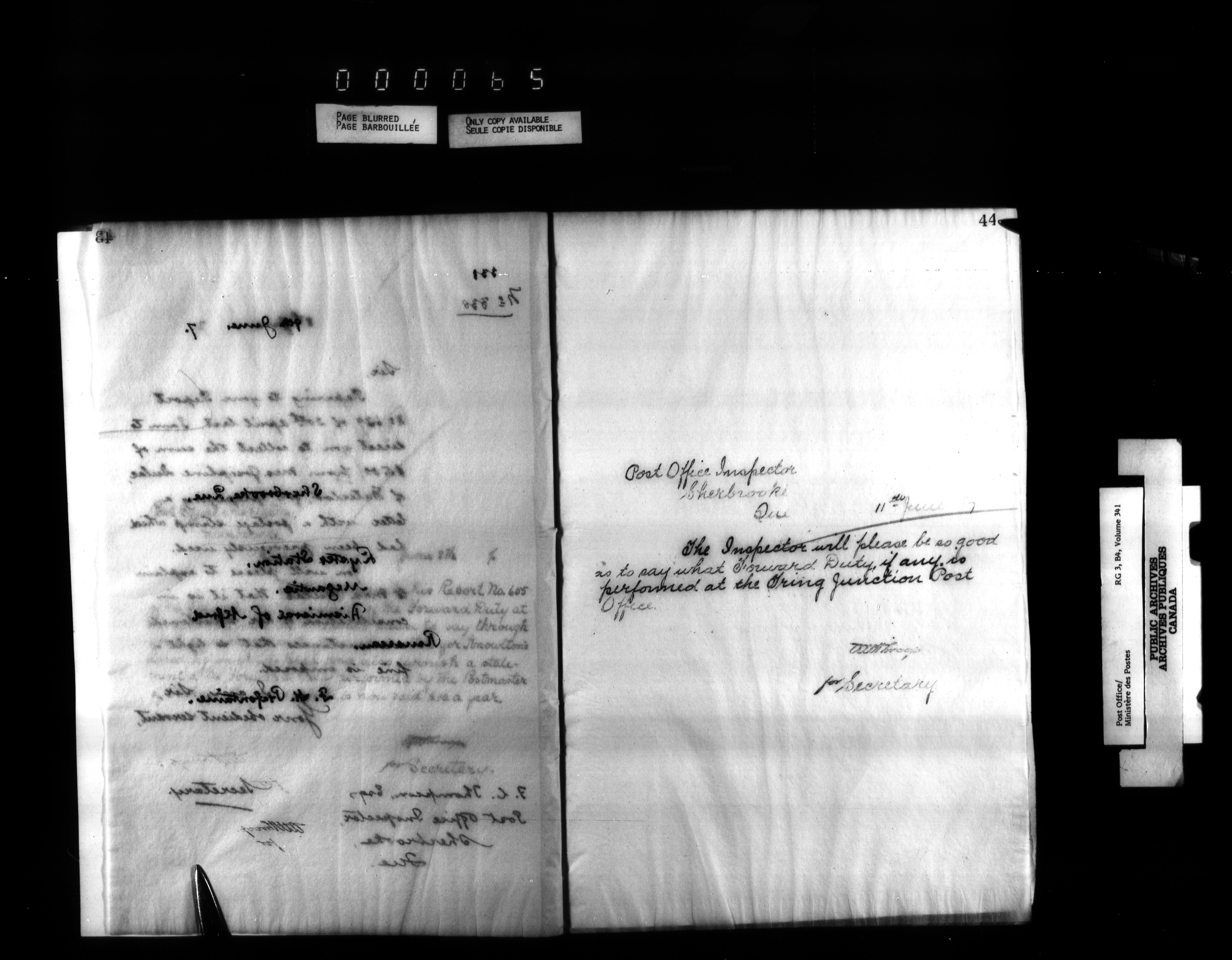 Correspondence from the Secretary to Post Office Inspectors : Letterbooks, Quebec- Quebec - 2230