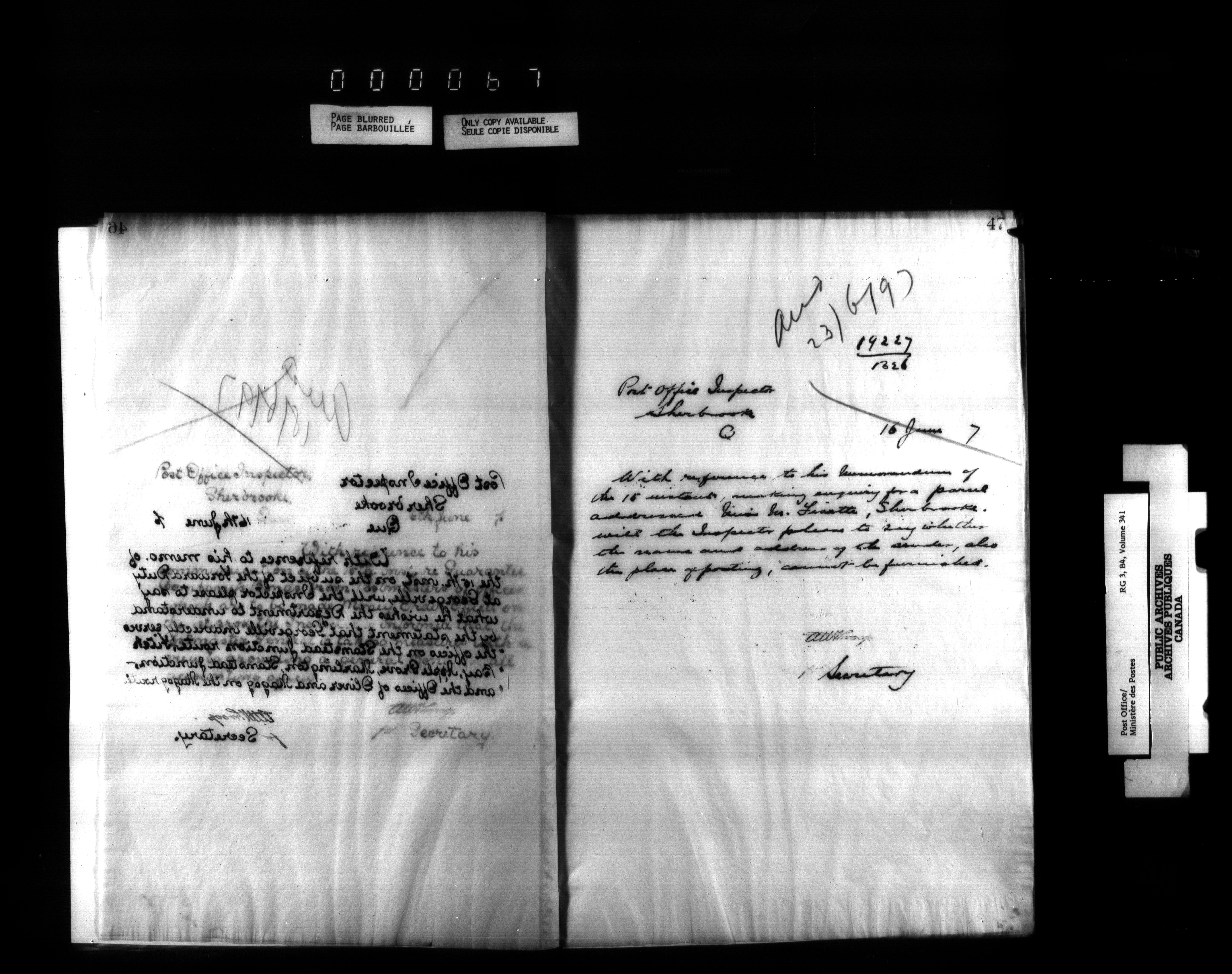 Correspondence from the Secretary to Post Office Inspectors : Letterbooks, Quebec- Quebec - 2230