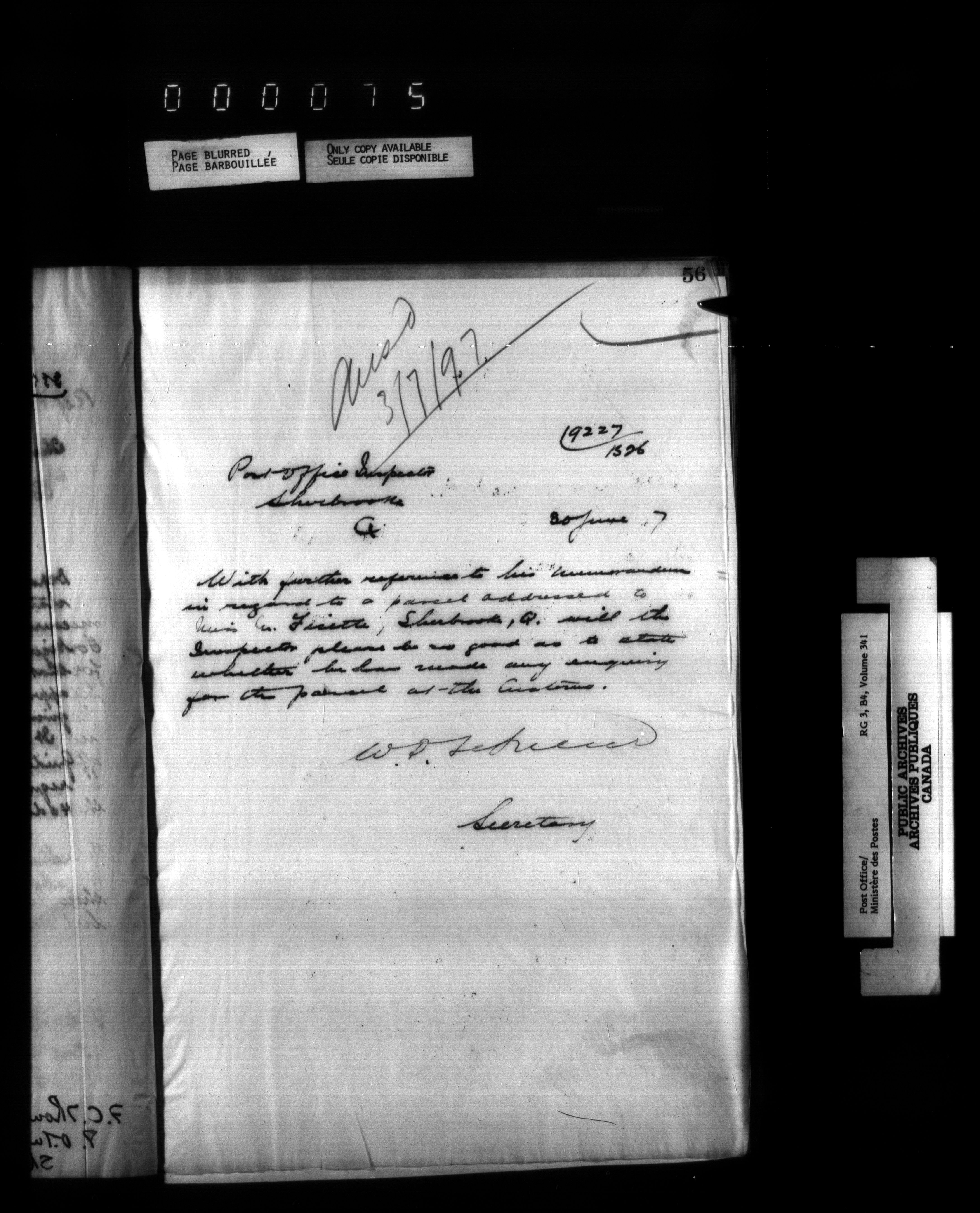 Correspondence from the Secretary to Post Office Inspectors : Letterbooks, Quebec- Quebec - 2230
