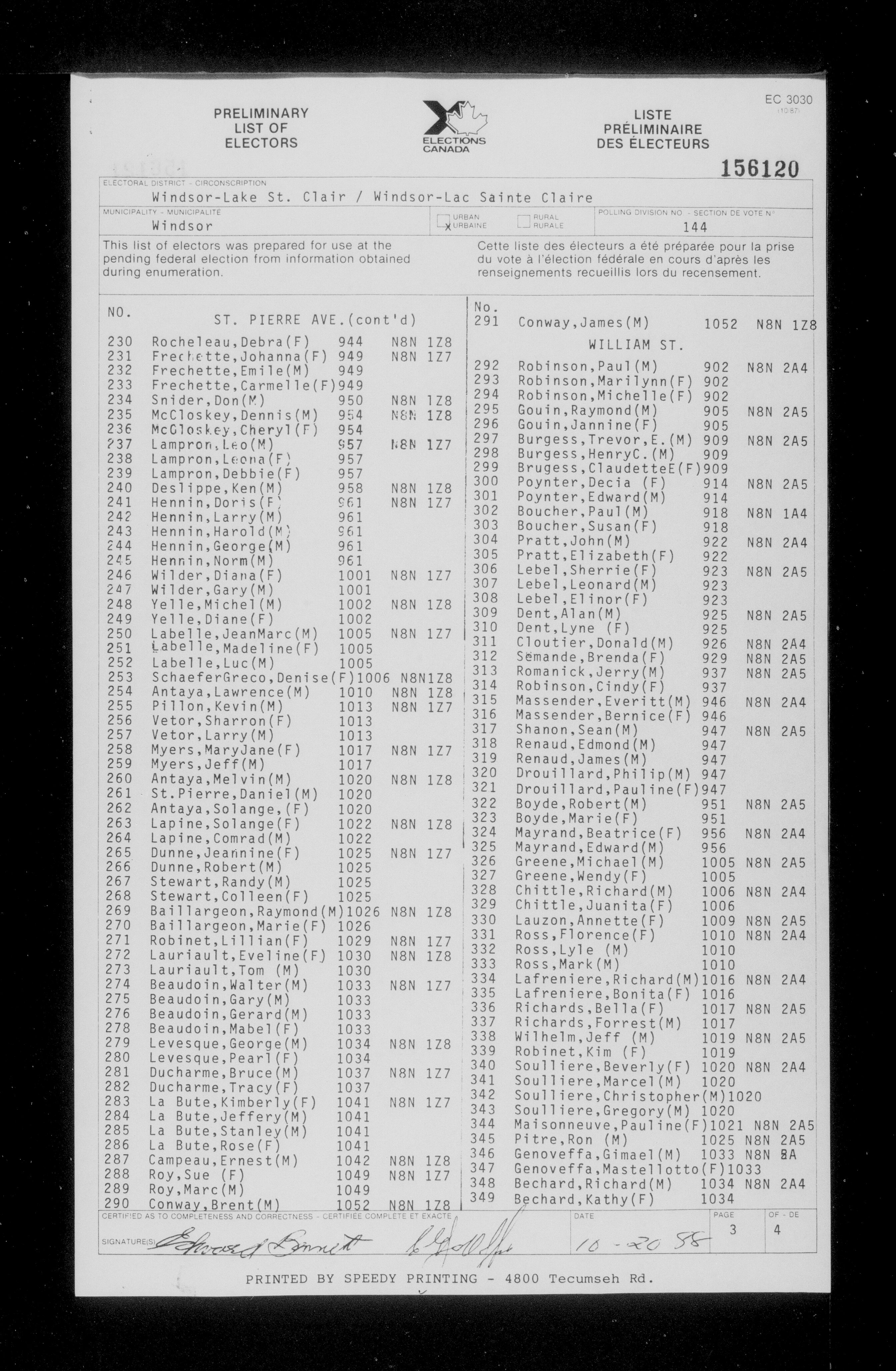 Preliminary voters' lists : Ontario, 1988 - T-22324