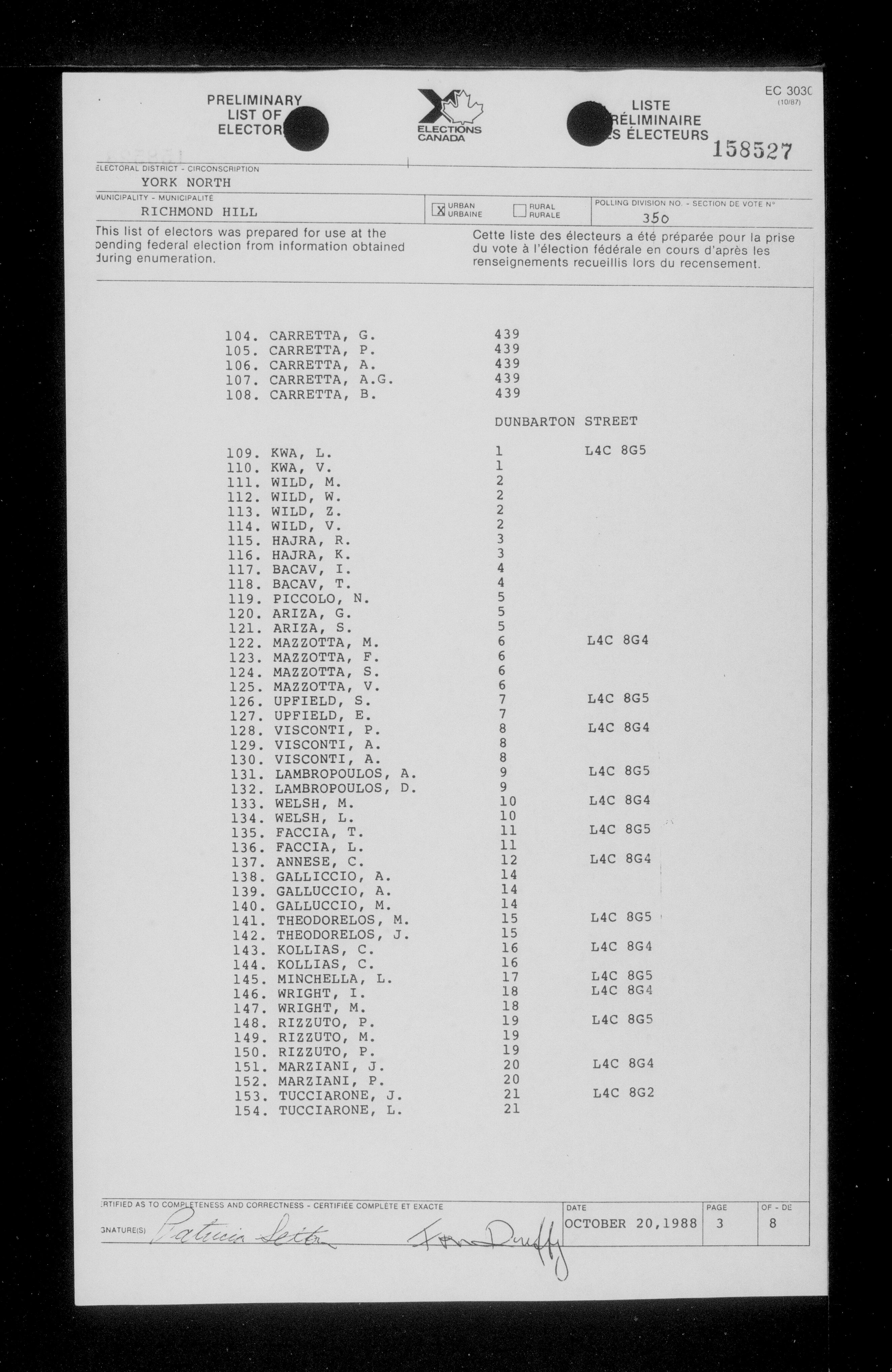 Preliminary voters' lists : Ontario, 1988 - T-22325