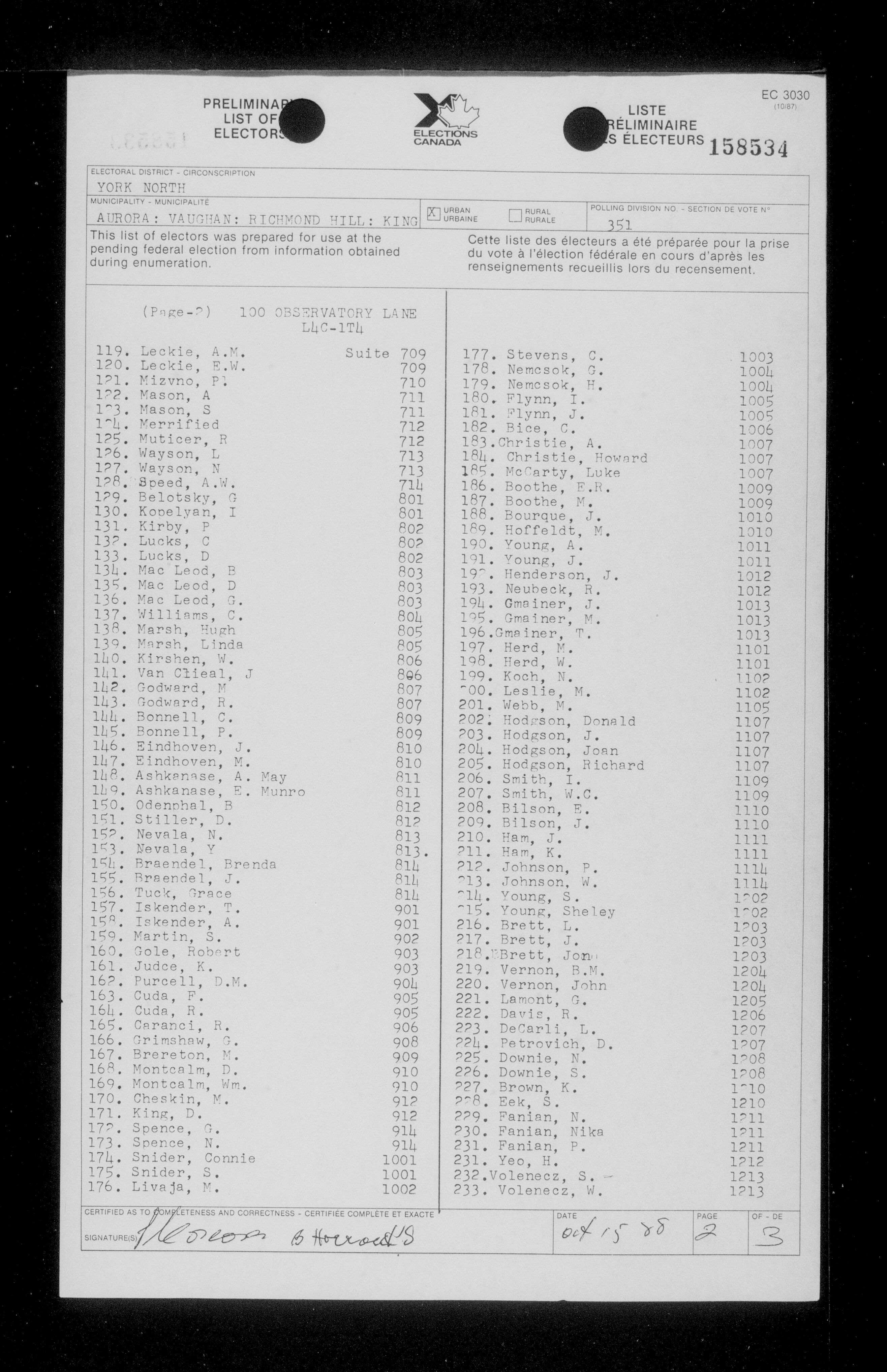 Preliminary voters' lists : Ontario, 1988 - T-22325