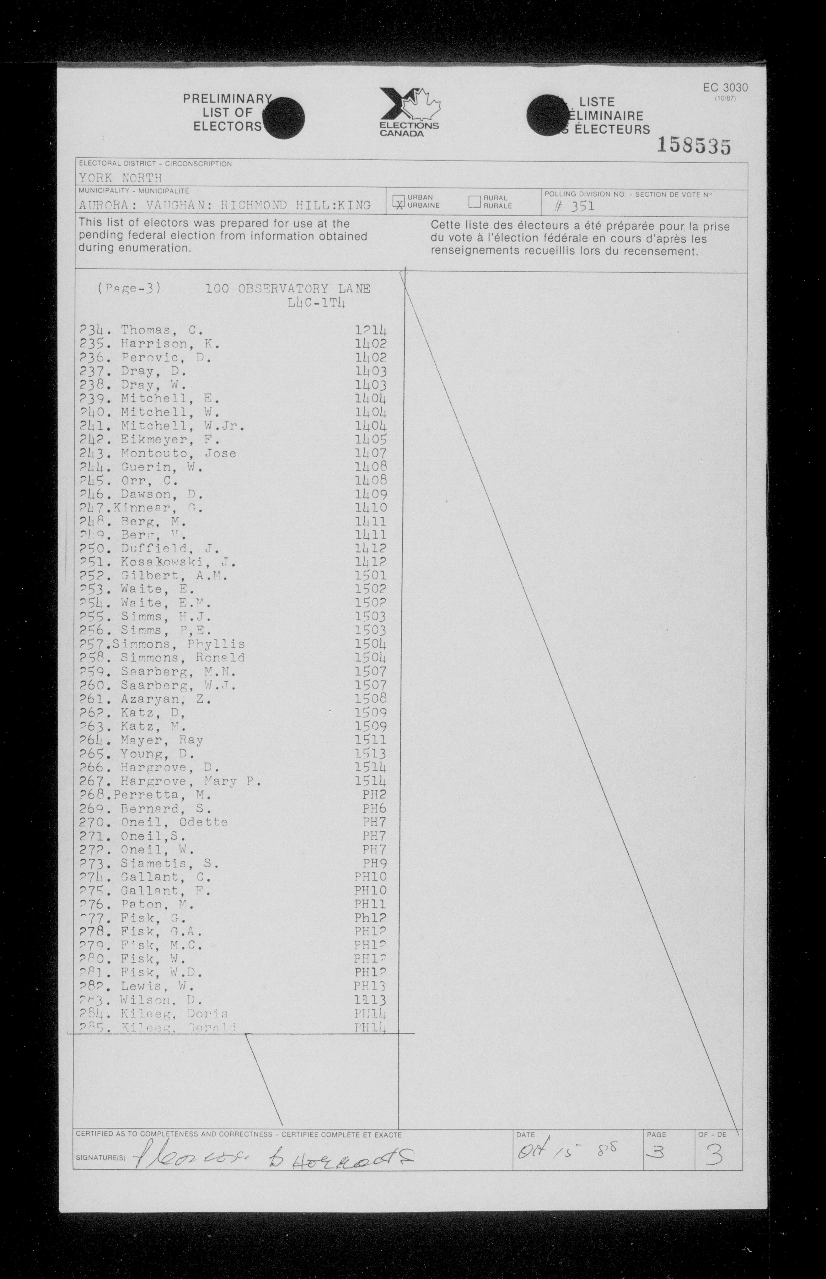 Preliminary voters' lists : Ontario, 1988 - T-22325