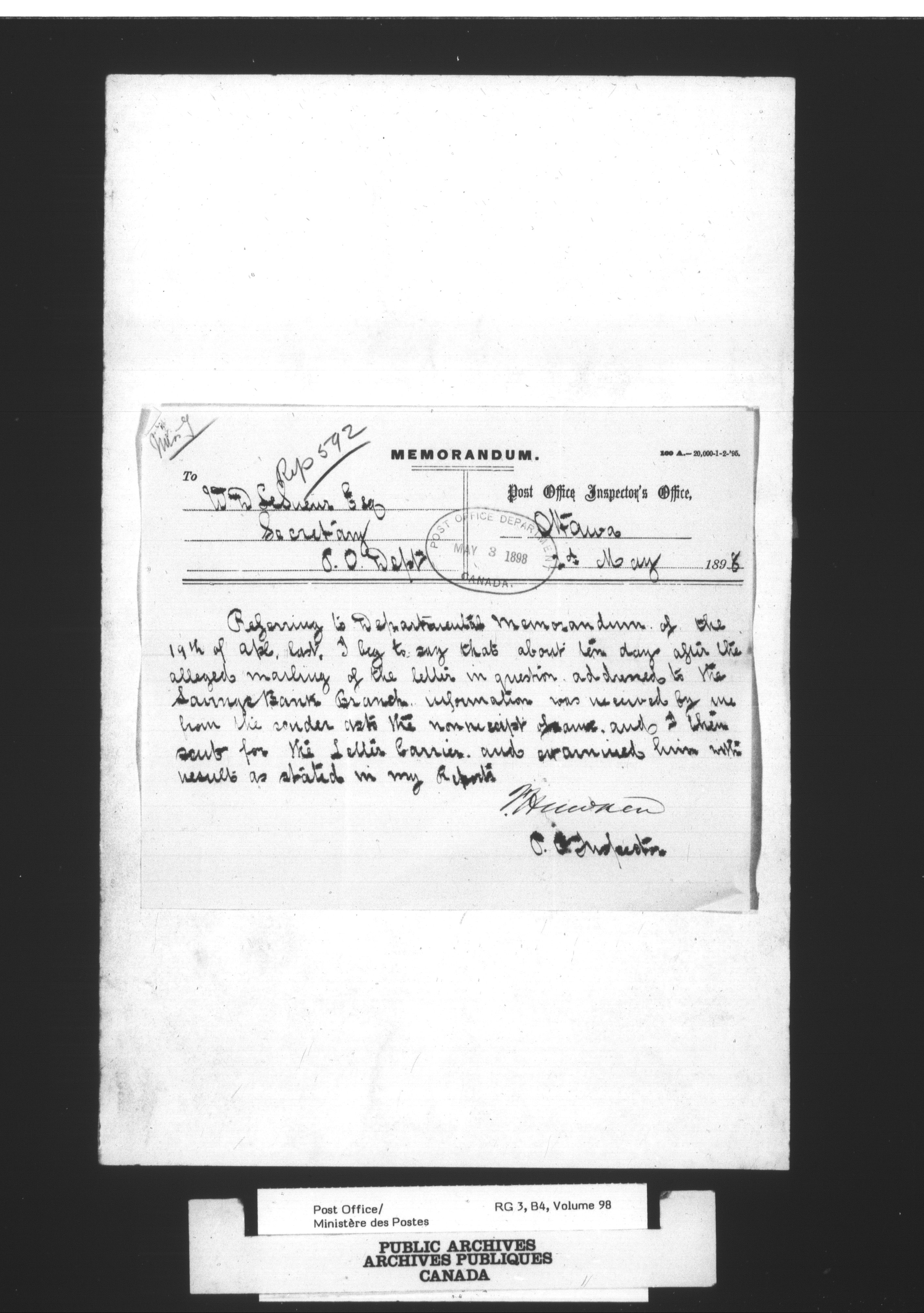 Post Office Department, Divisional Inspectors : Reports - 2262