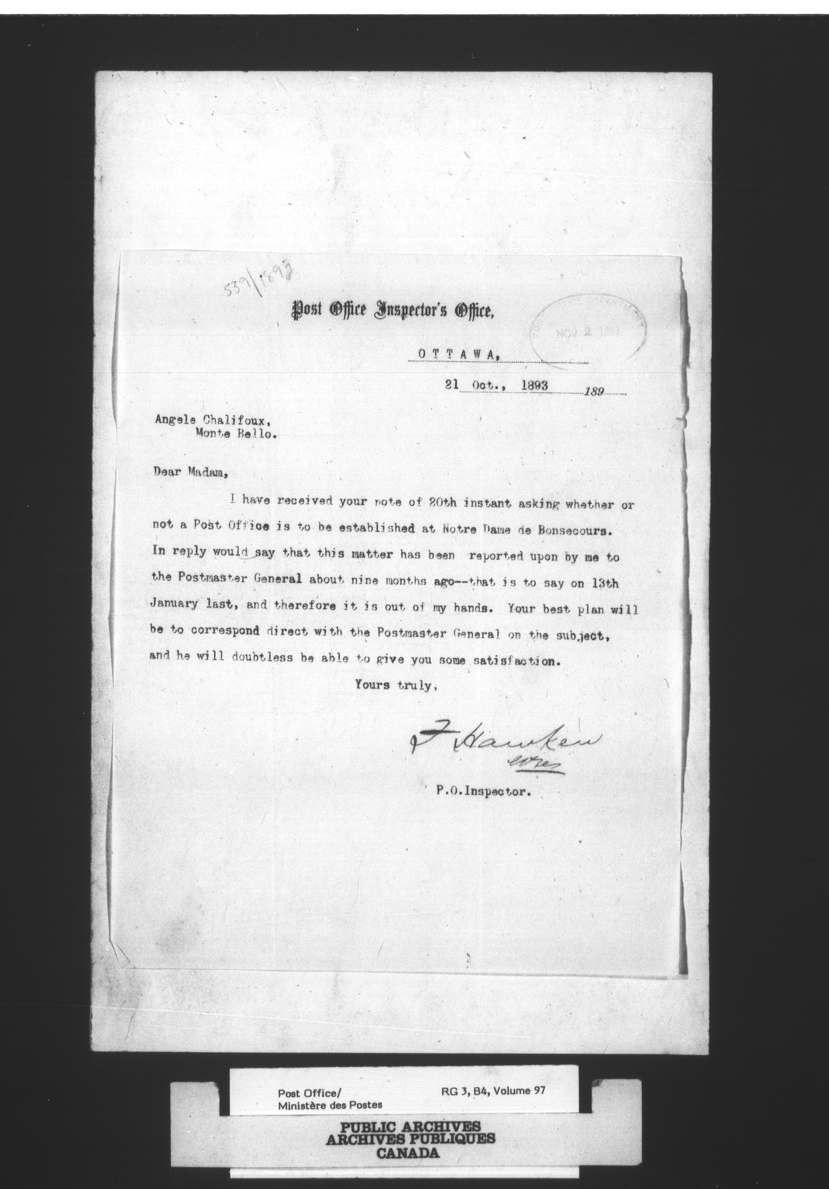 Post Office Department, Divisional Inspectors : Reports - 2262
