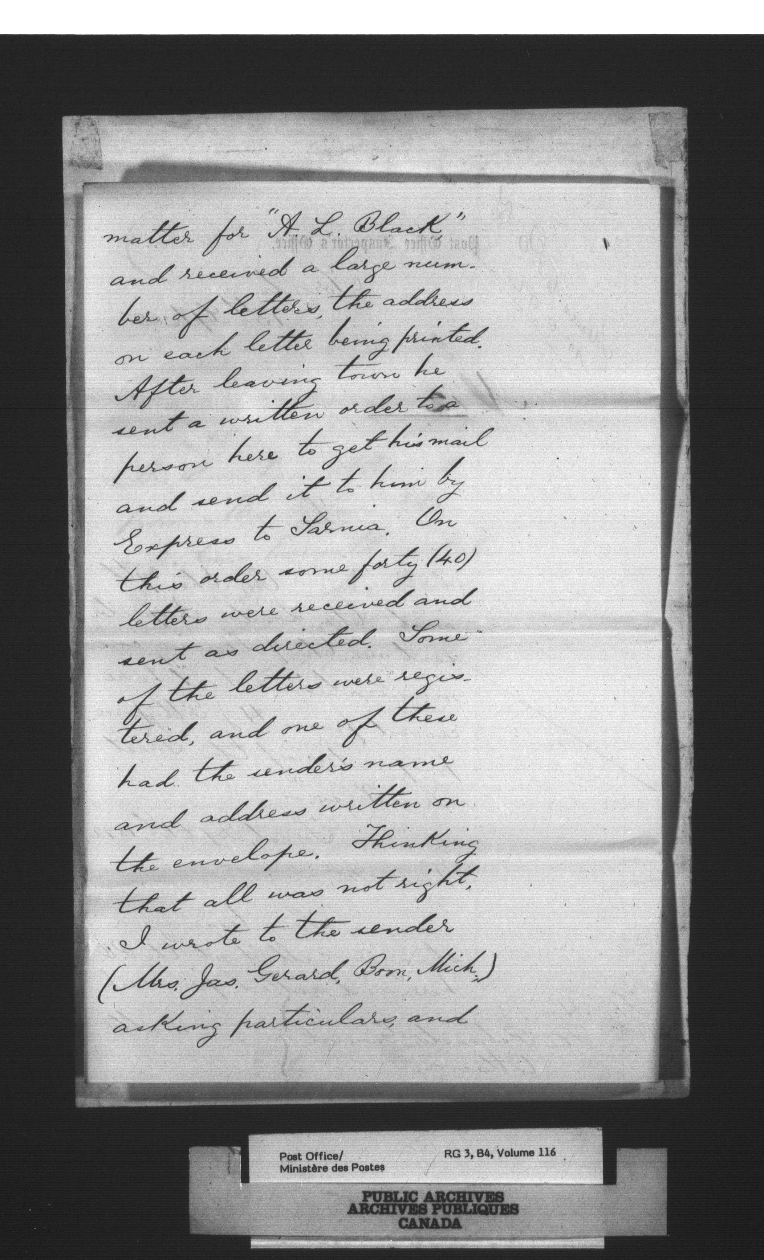Post Office Department, Divisional Inspectors : Reports - 2274