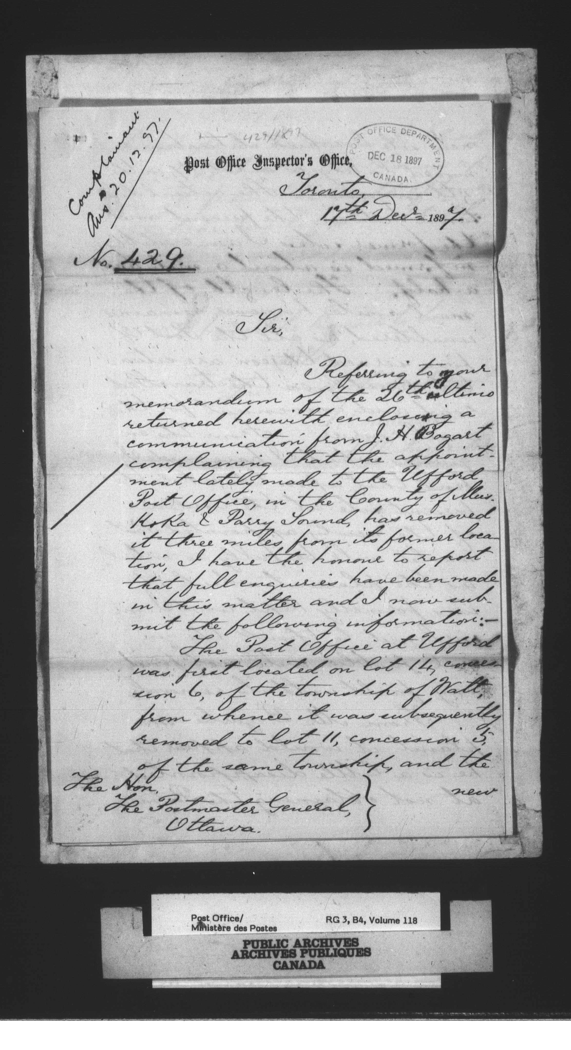 Post Office Department, Divisional Inspectors : Reports - 2275