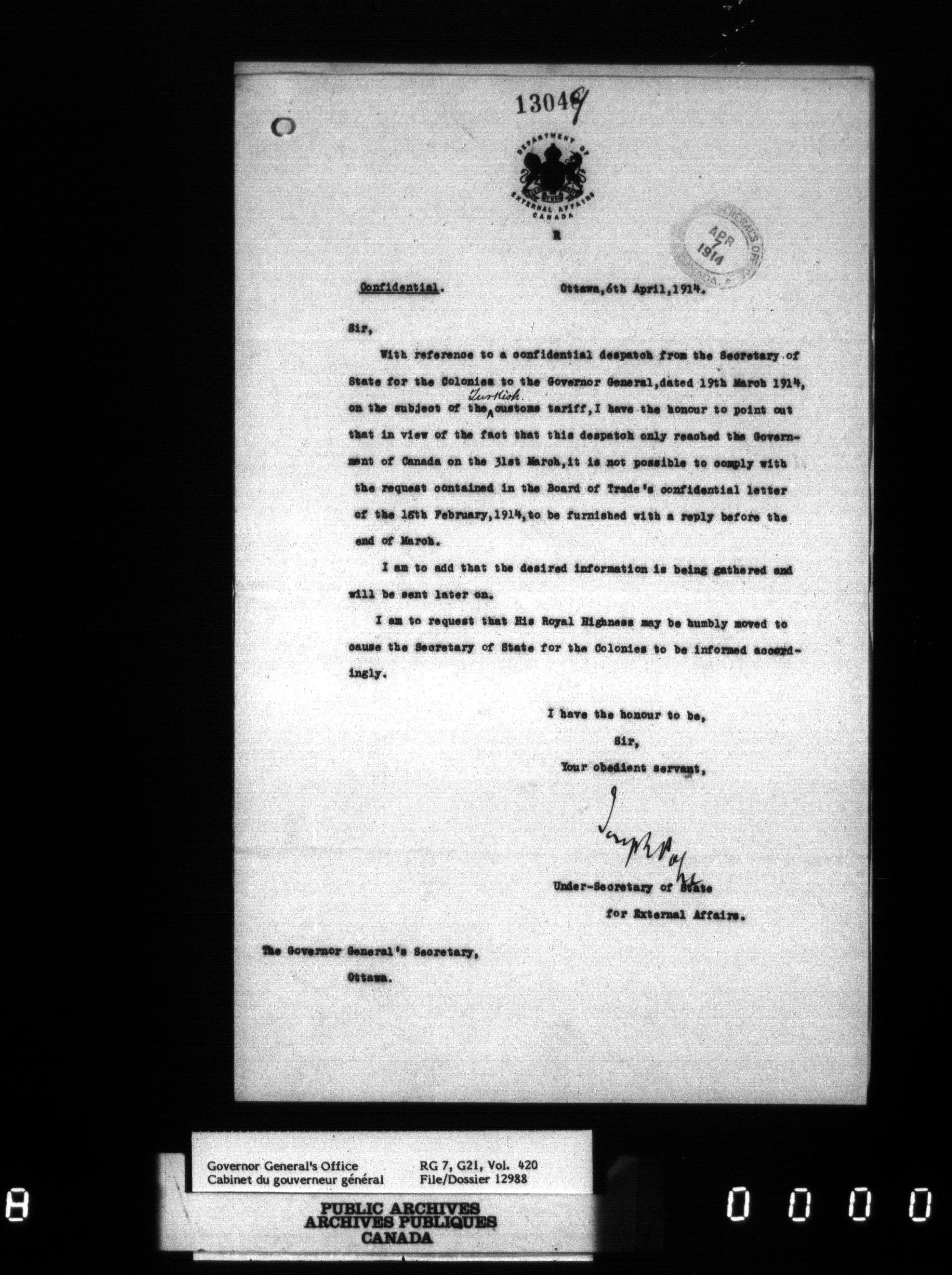 [Governor General] numbered files - 2299