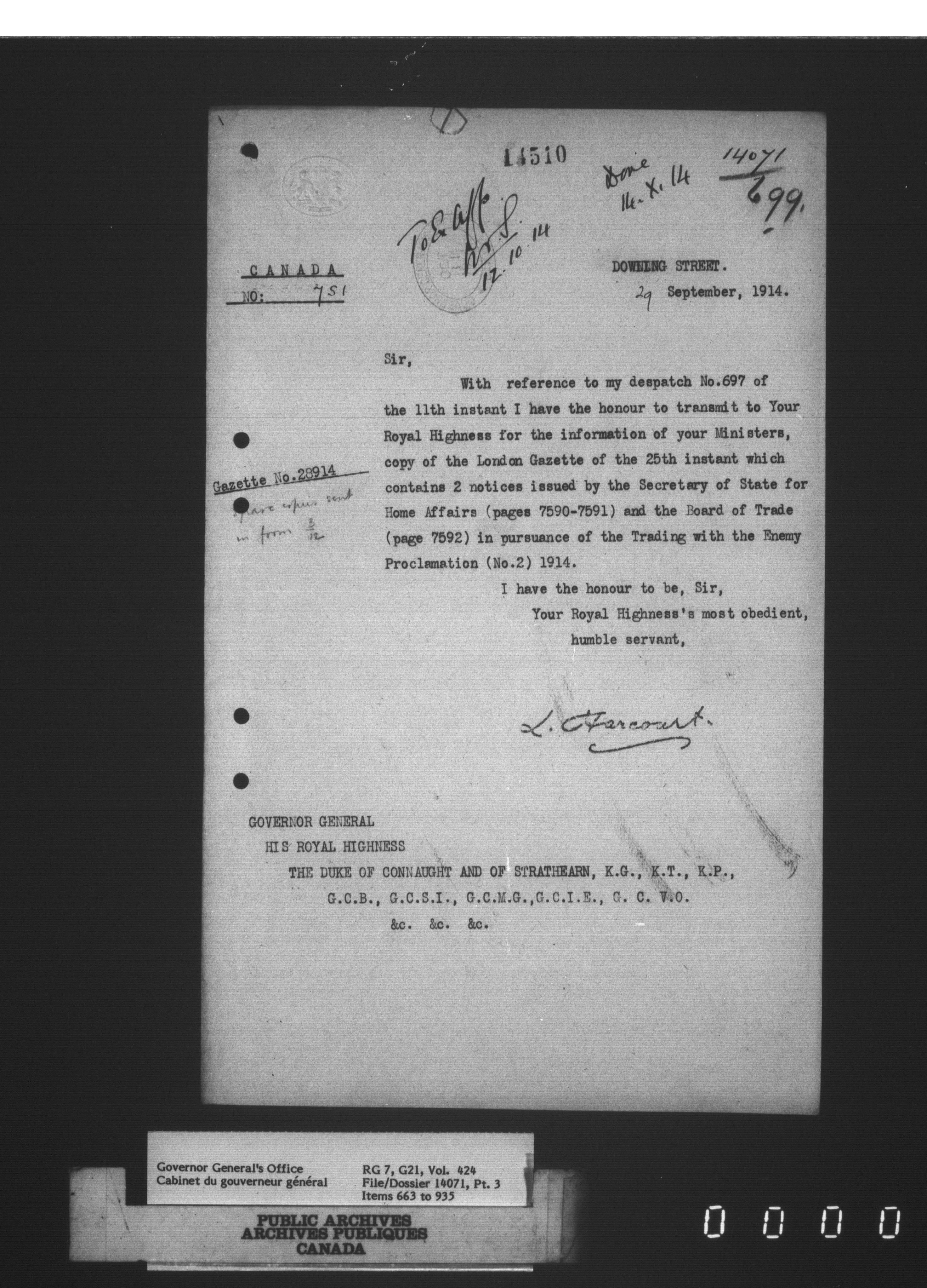 [Governor General] numbered files - 2301