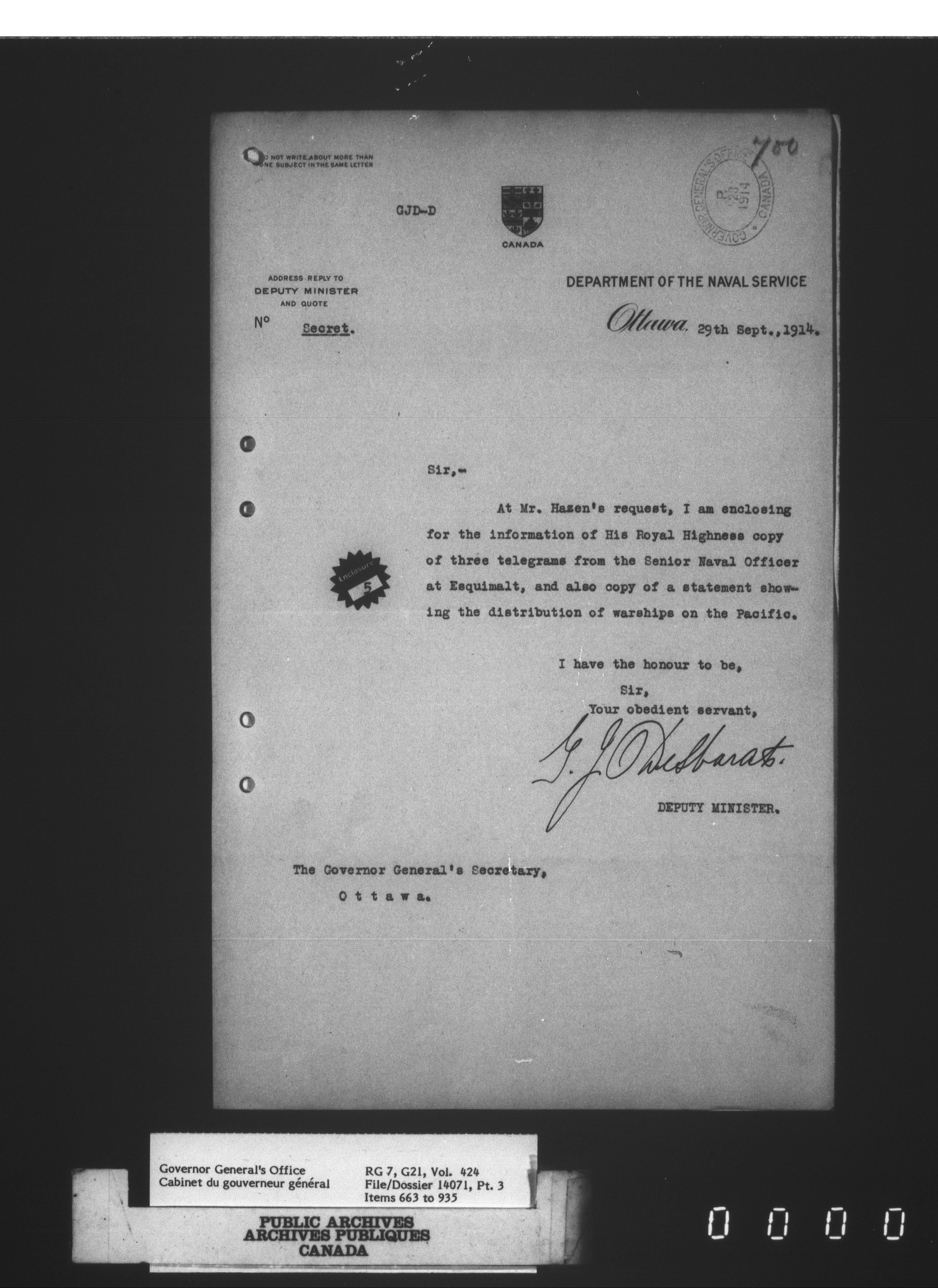 [Governor General] numbered files - 2301