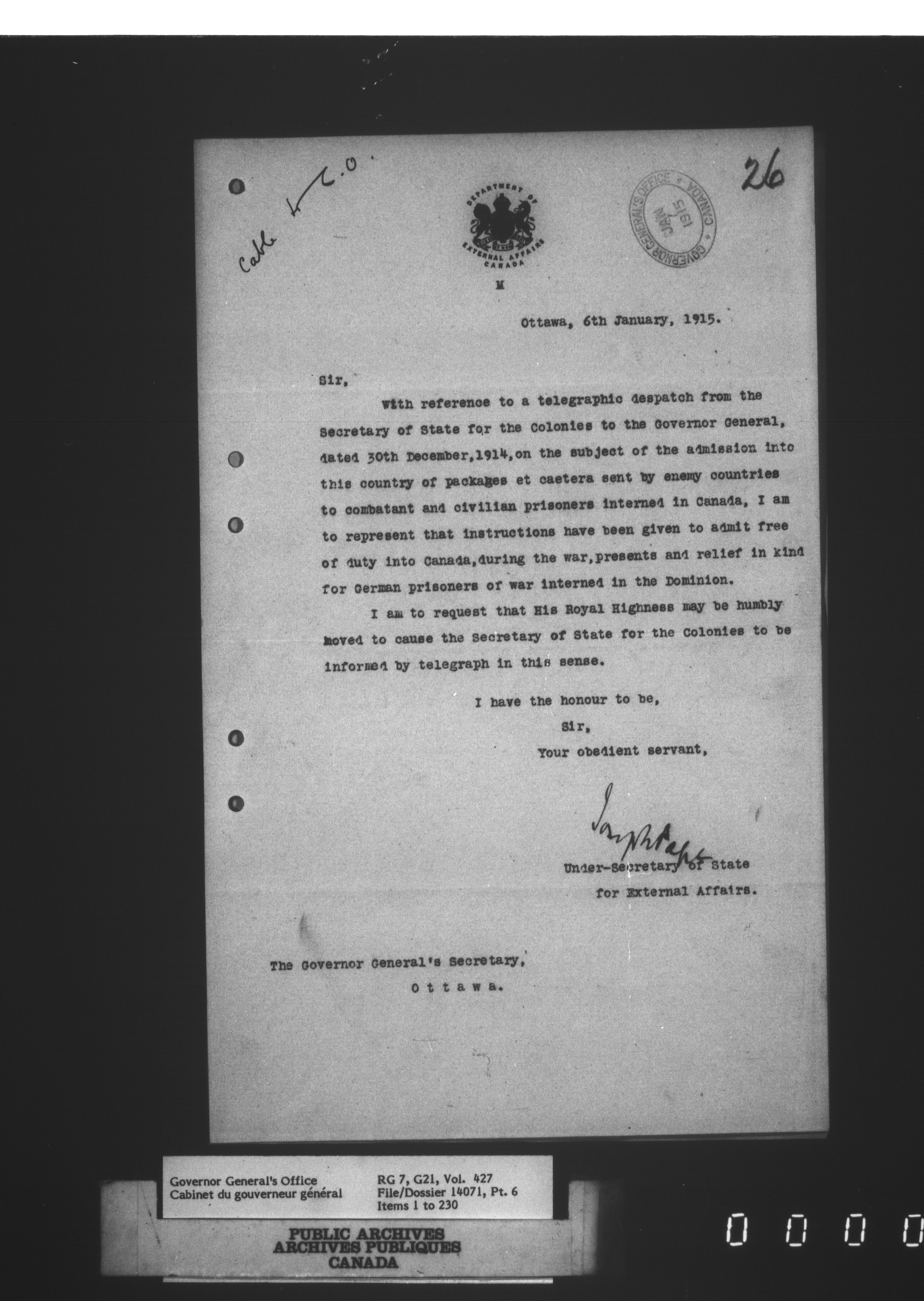 [Governor General] numbered files - 2302
