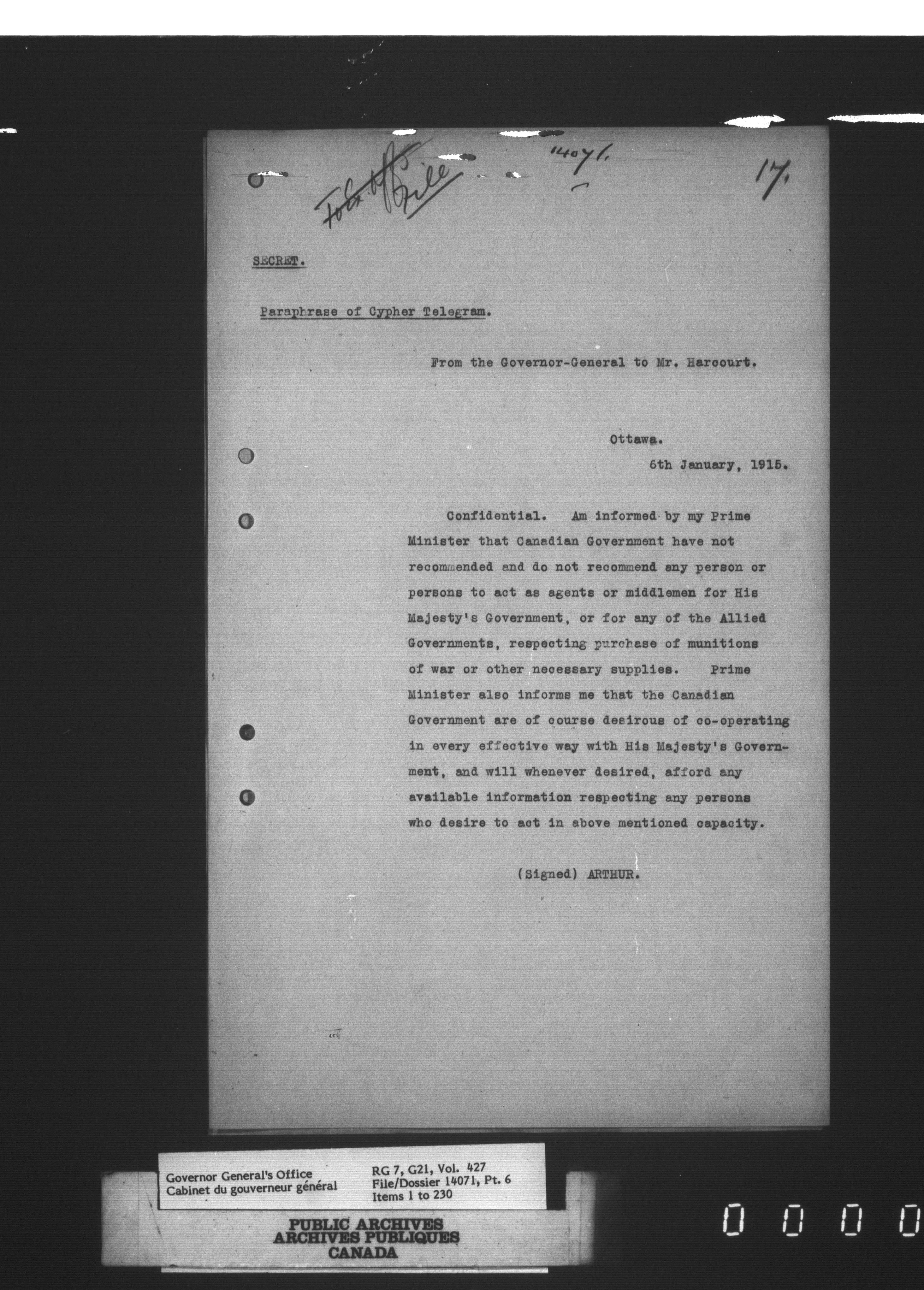 [Governor General] numbered files - 2302