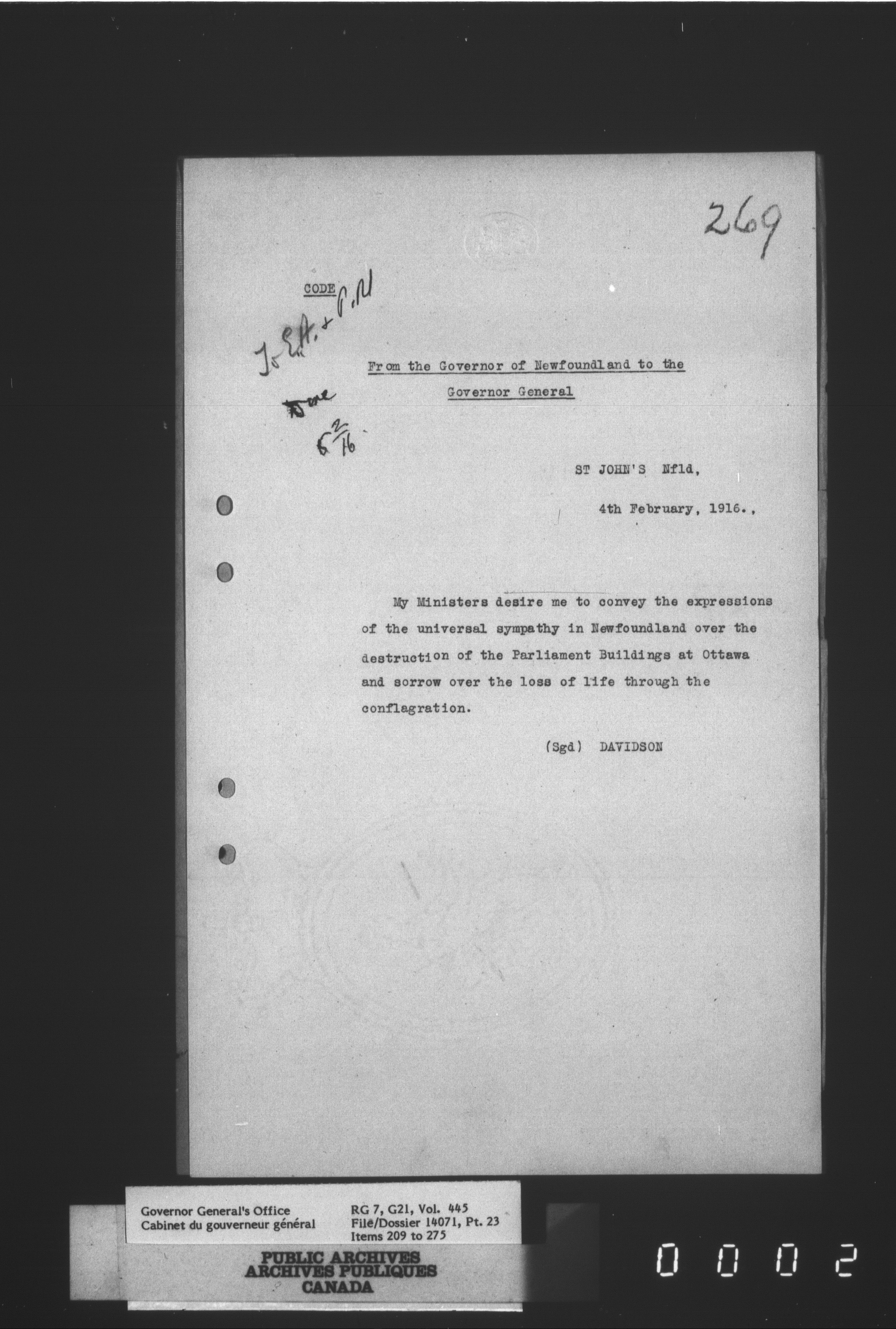 [Governor General] numbered files - 2306