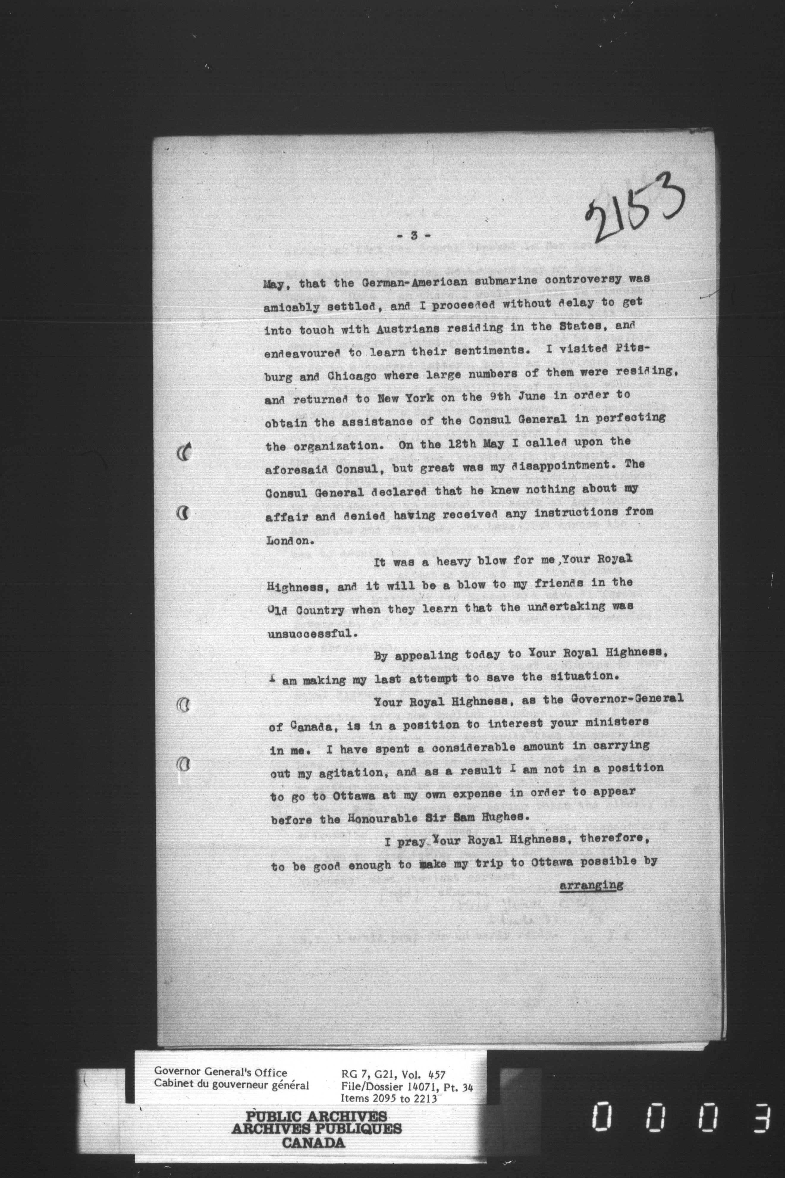 [Governor General] numbered files - 2310