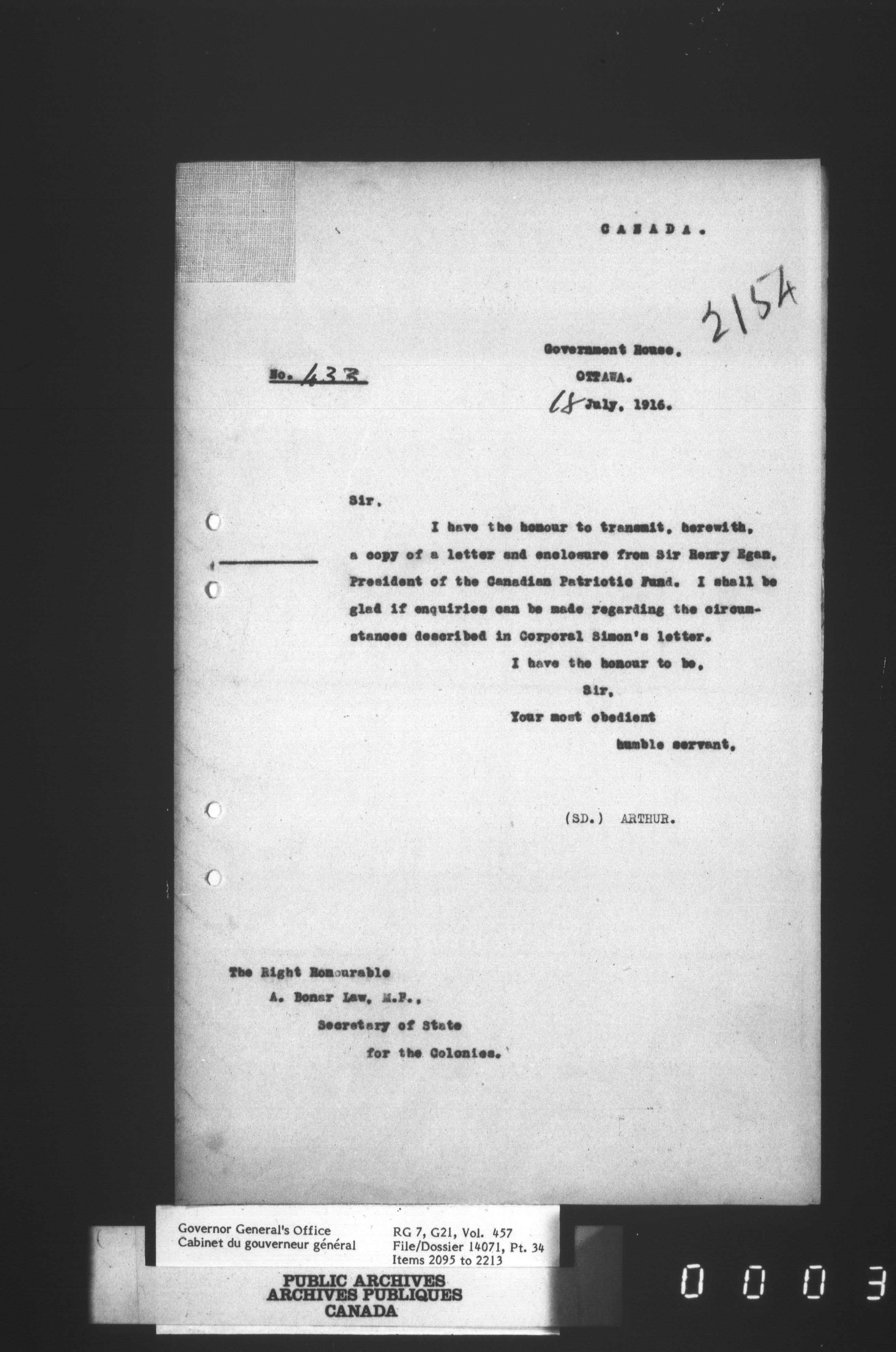 [Governor General] numbered files - 2310